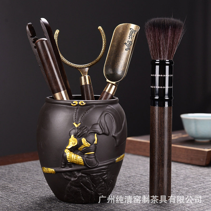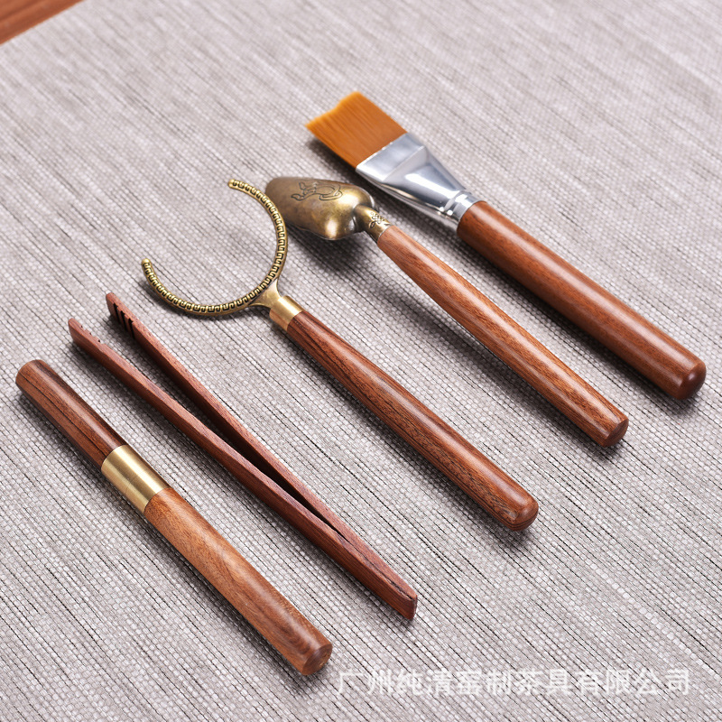 实木黑檀茶道五件套茶道六君子功夫茶具配件茶针茶勺茶夹杯叉茶刷