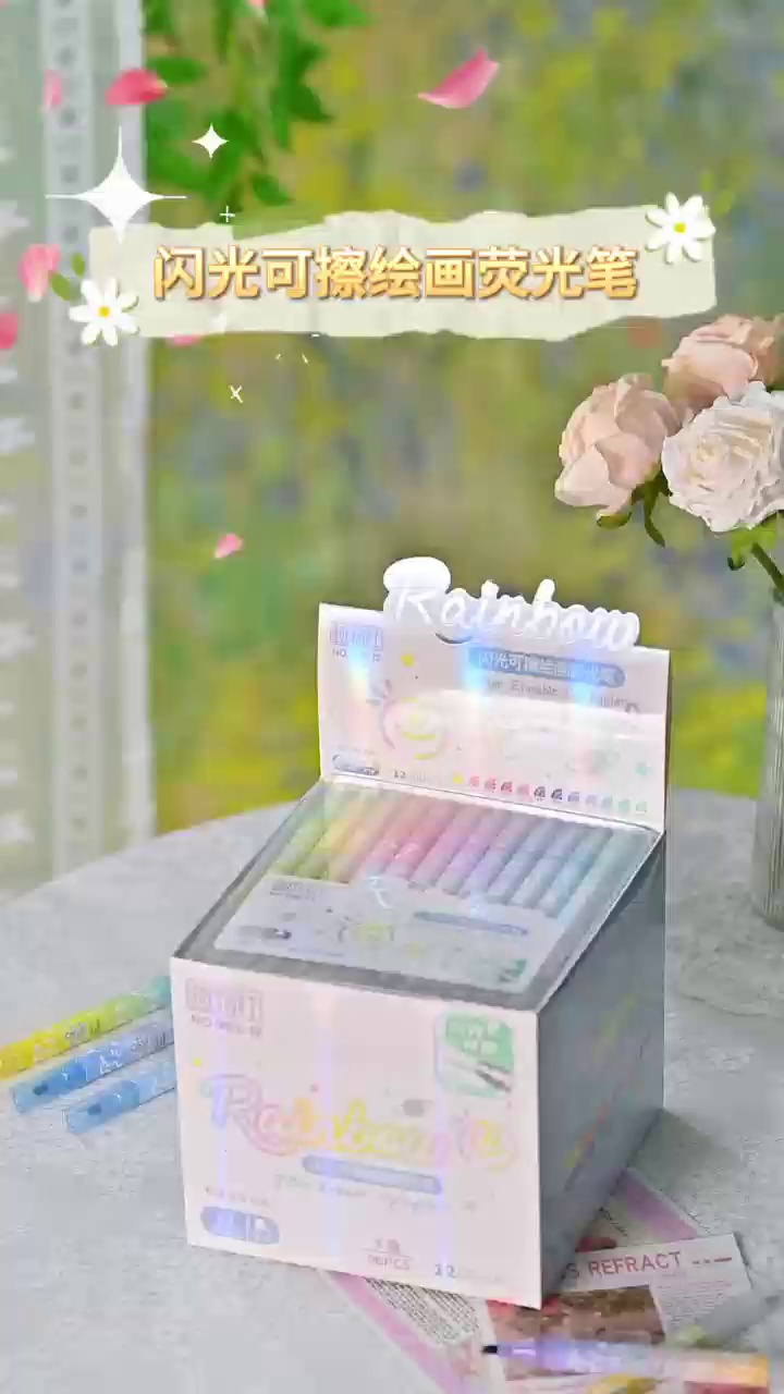 12色闪光可擦绘画荧光笔闪光手账绘画马卡龙色盒装彩绘笔