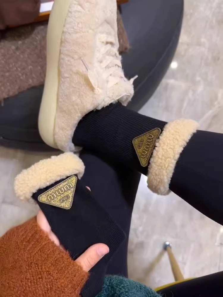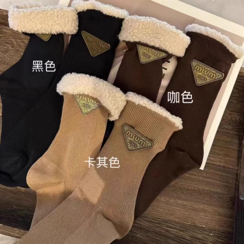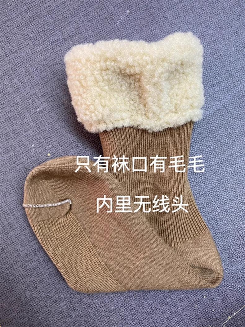 秋冬新款欧货袜口毛毛中筒袜女手缝金属标网红款潮袜休闲雪地靴袜