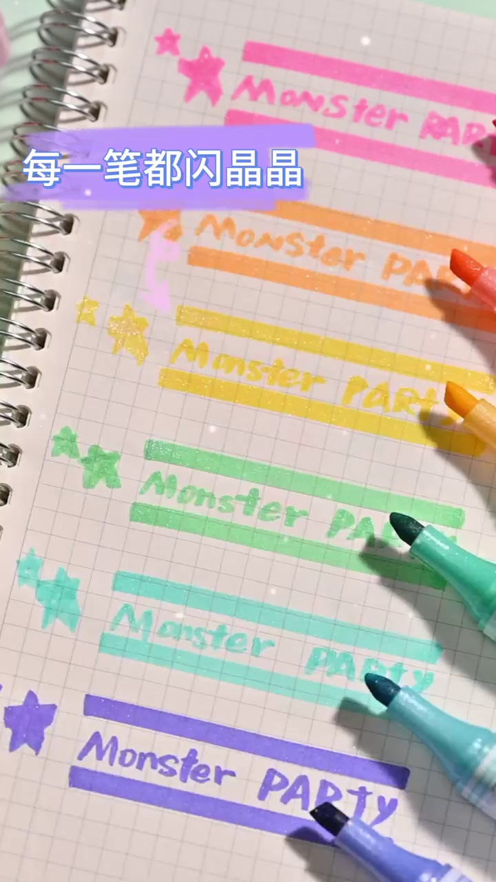 972怪物派对闪闪可擦荧光笔学生高颜值彩色划重点斜头手账笔标记