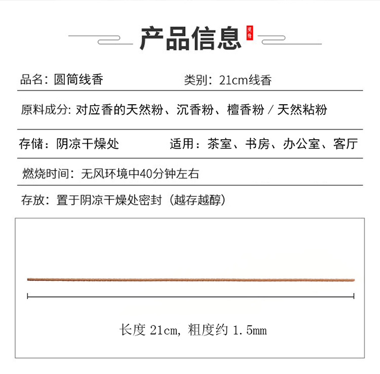 圆筒装200克天然老山檀香沉香细香艾草线香室内 除味供佛用品香薰
