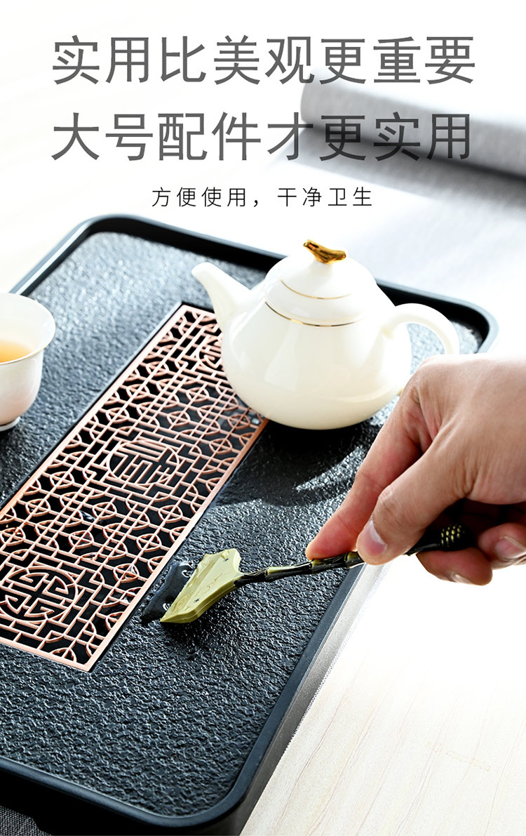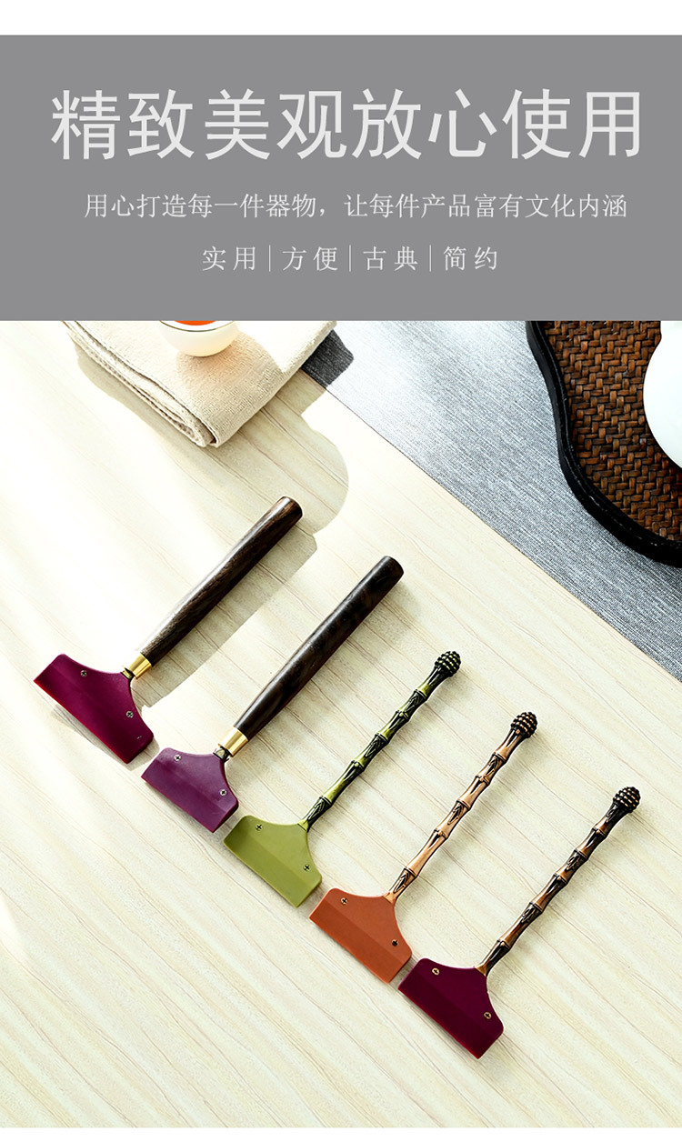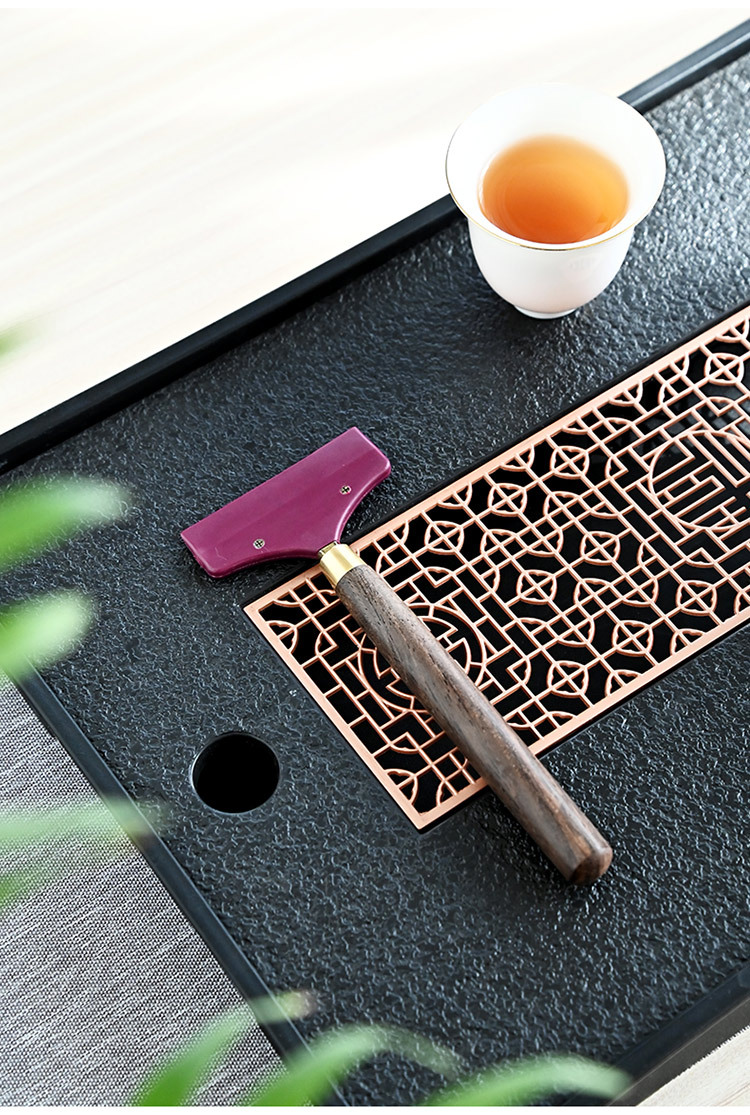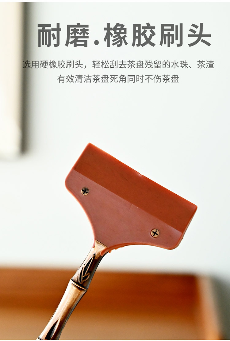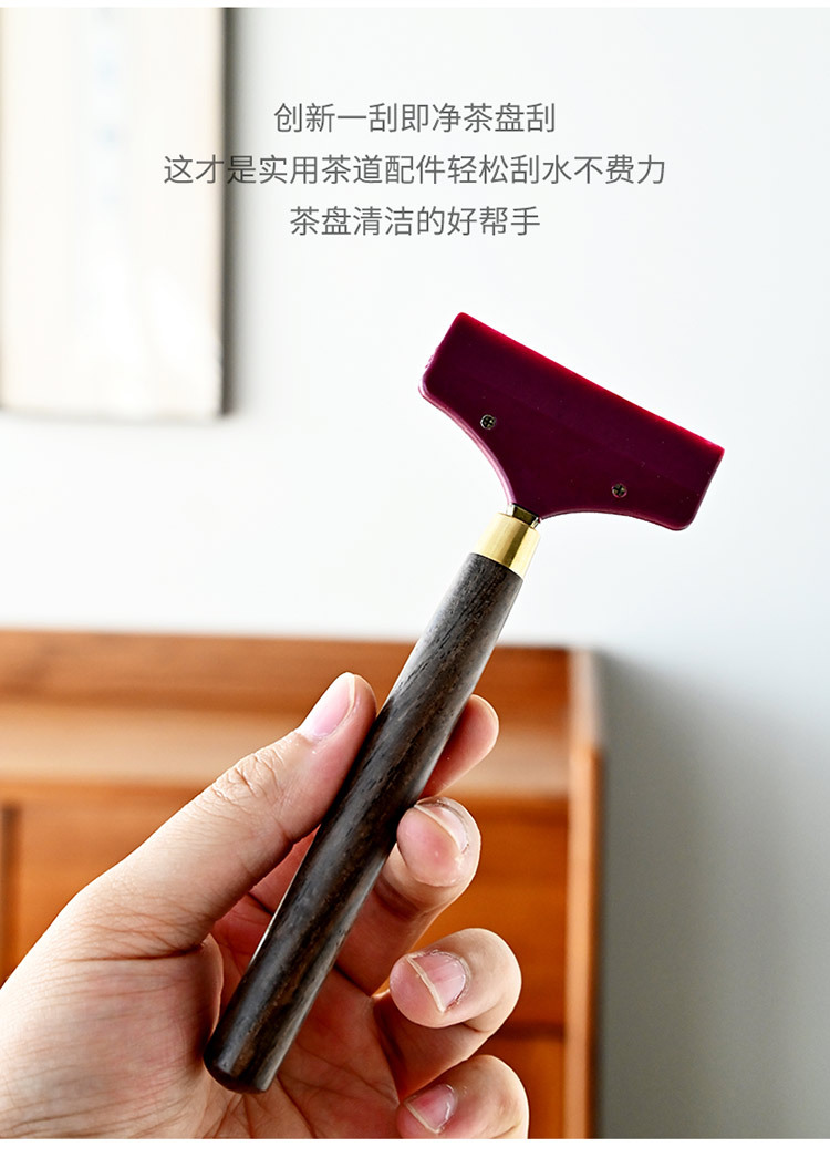 黑檀木铜头茶盘茶水刮合金茶刮硅胶清洁用品桌面茶刷刮水板茶道配