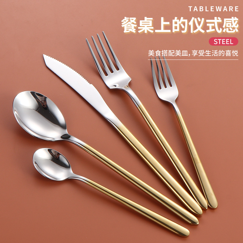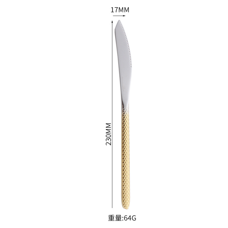 金色牛排刀叉勺430不锈钢酒店西餐餐具鱼纹刀叉餐勺餐叉甜品勺子