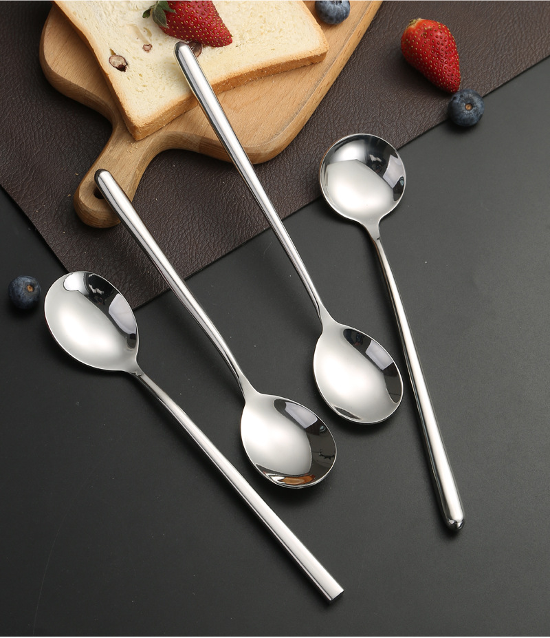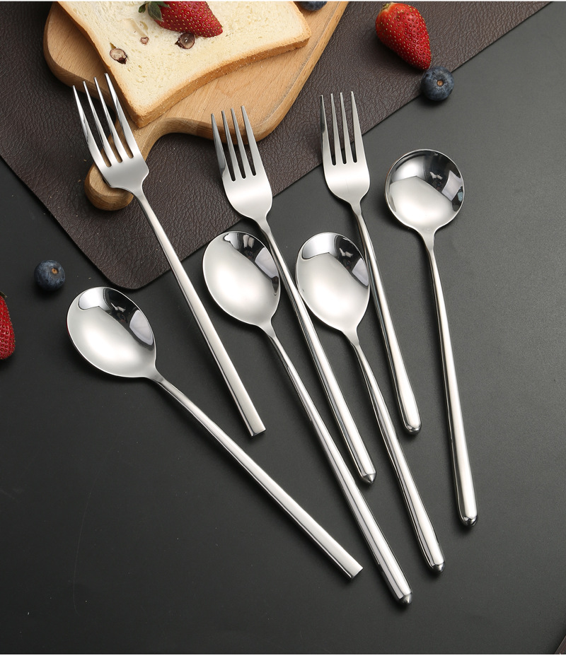 韩式空心柄餐具304不锈钢勺子叉子长柄汤匙酒店西餐餐具加印LOGO