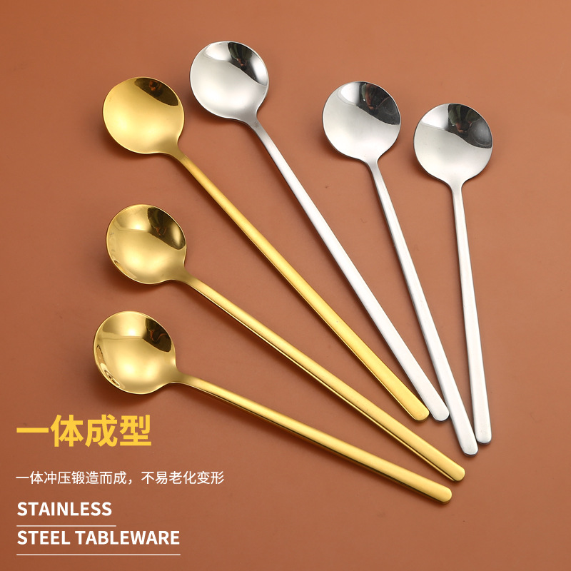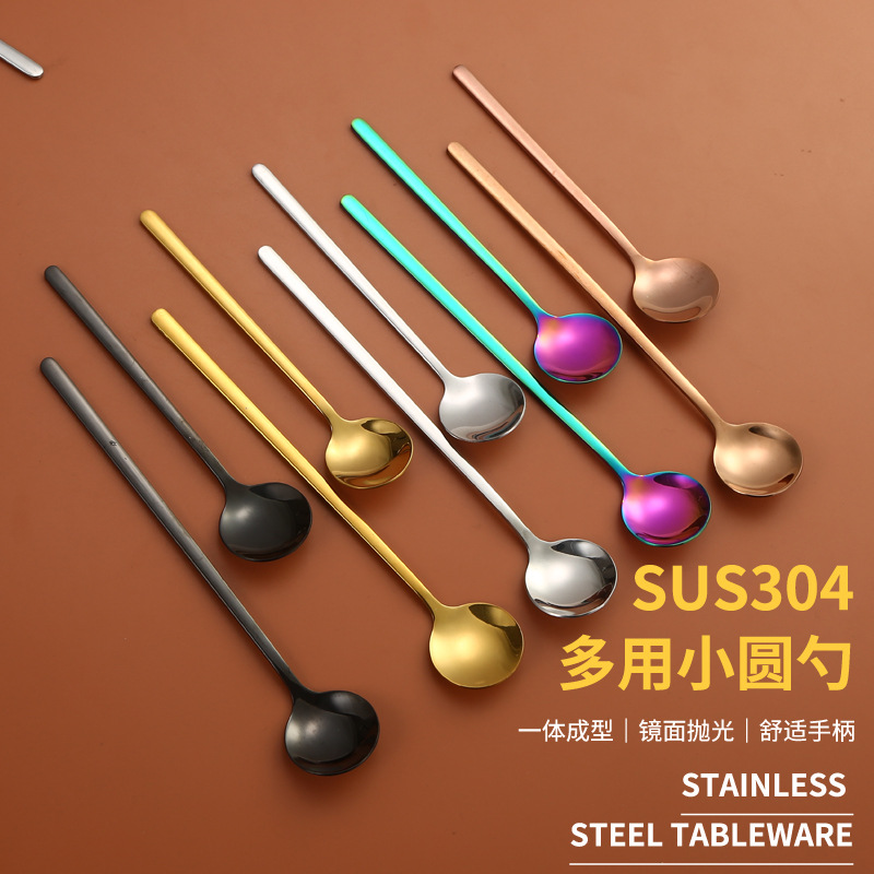 304不锈钢小圆勺子长柄冰勺高颜值咖啡勺金色勺家用搅拌勺伴手礼