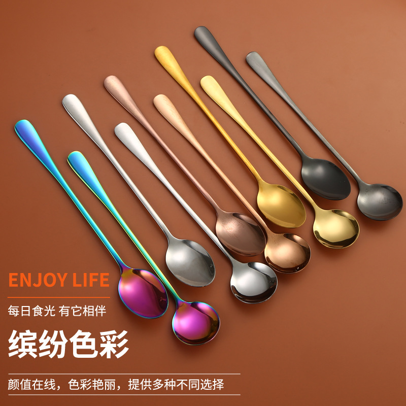 1010长柄不锈钢搅拌勺子冰勺创意咖啡勺跨境雪糕冰淇淋勺冰尖圆勺