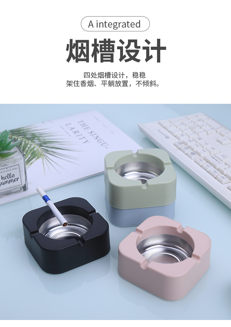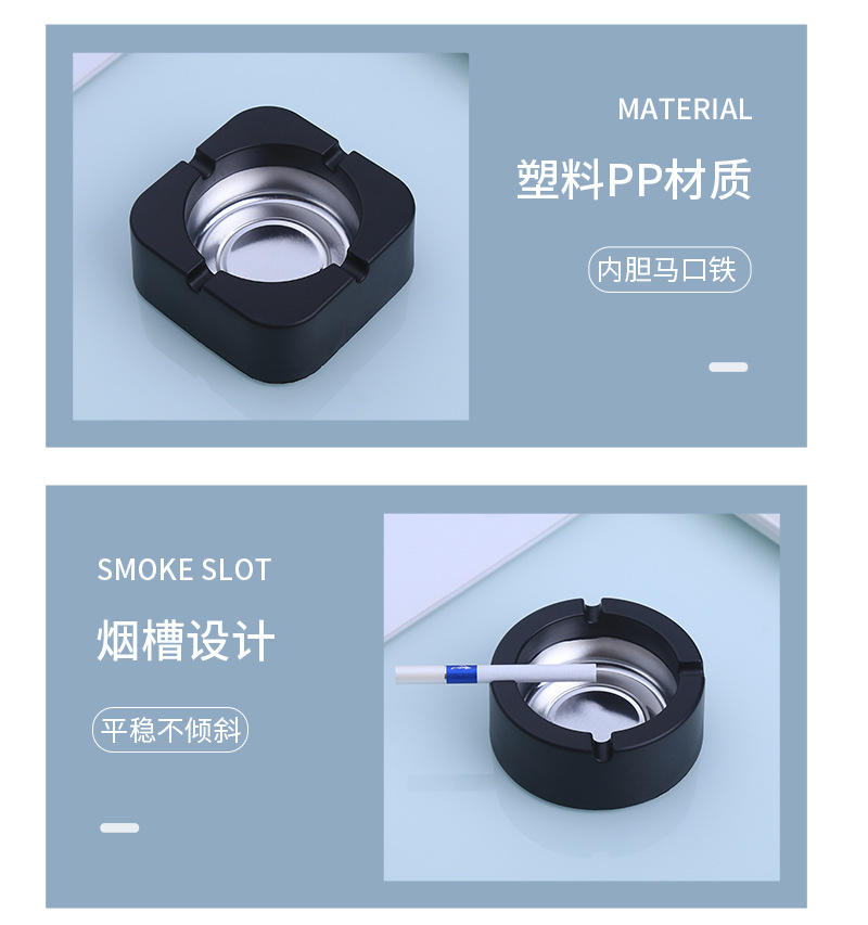 塑料烟灰缸不锈钢防烟飞创意客厅办公室家用礼品现代简约批发