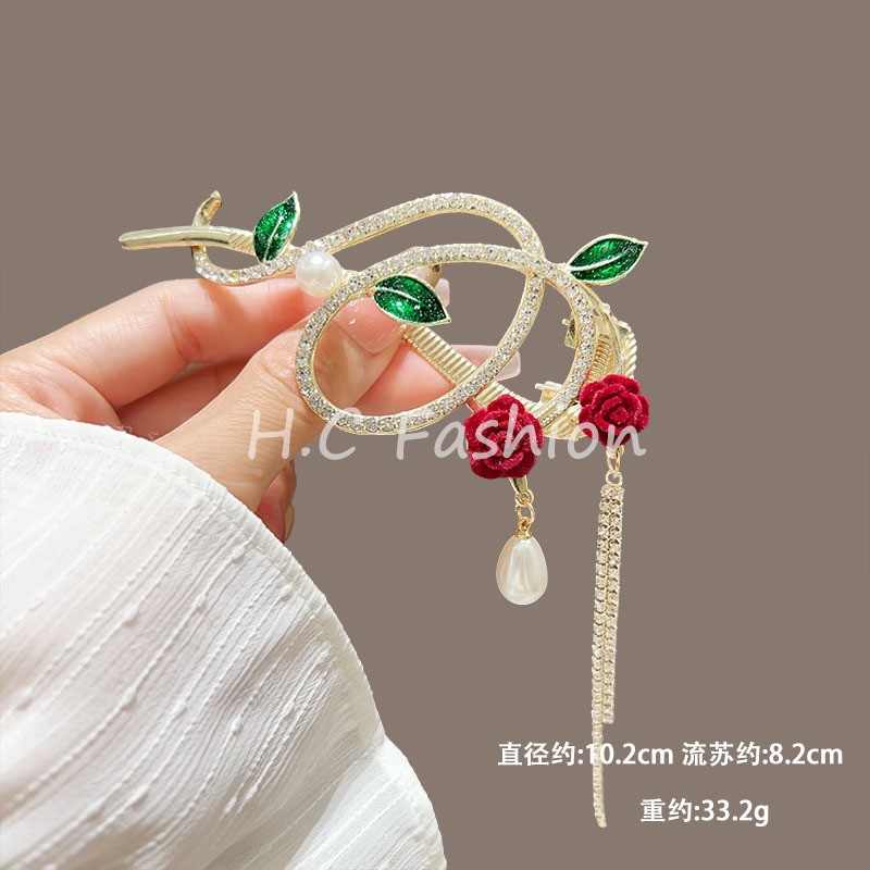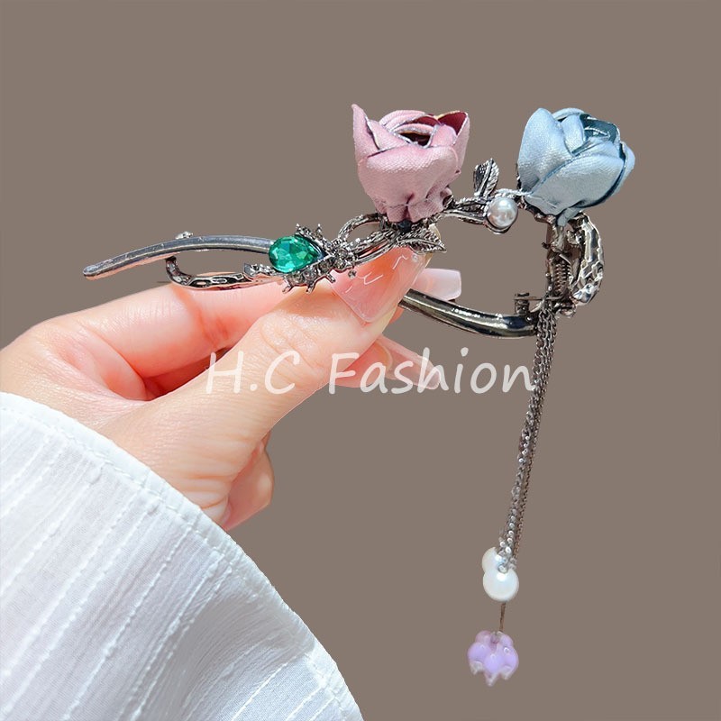 新中式刺绣蝴蝶流苏发夹女复古气质扭扭一字夹丸子扣后脑勺发抓夹