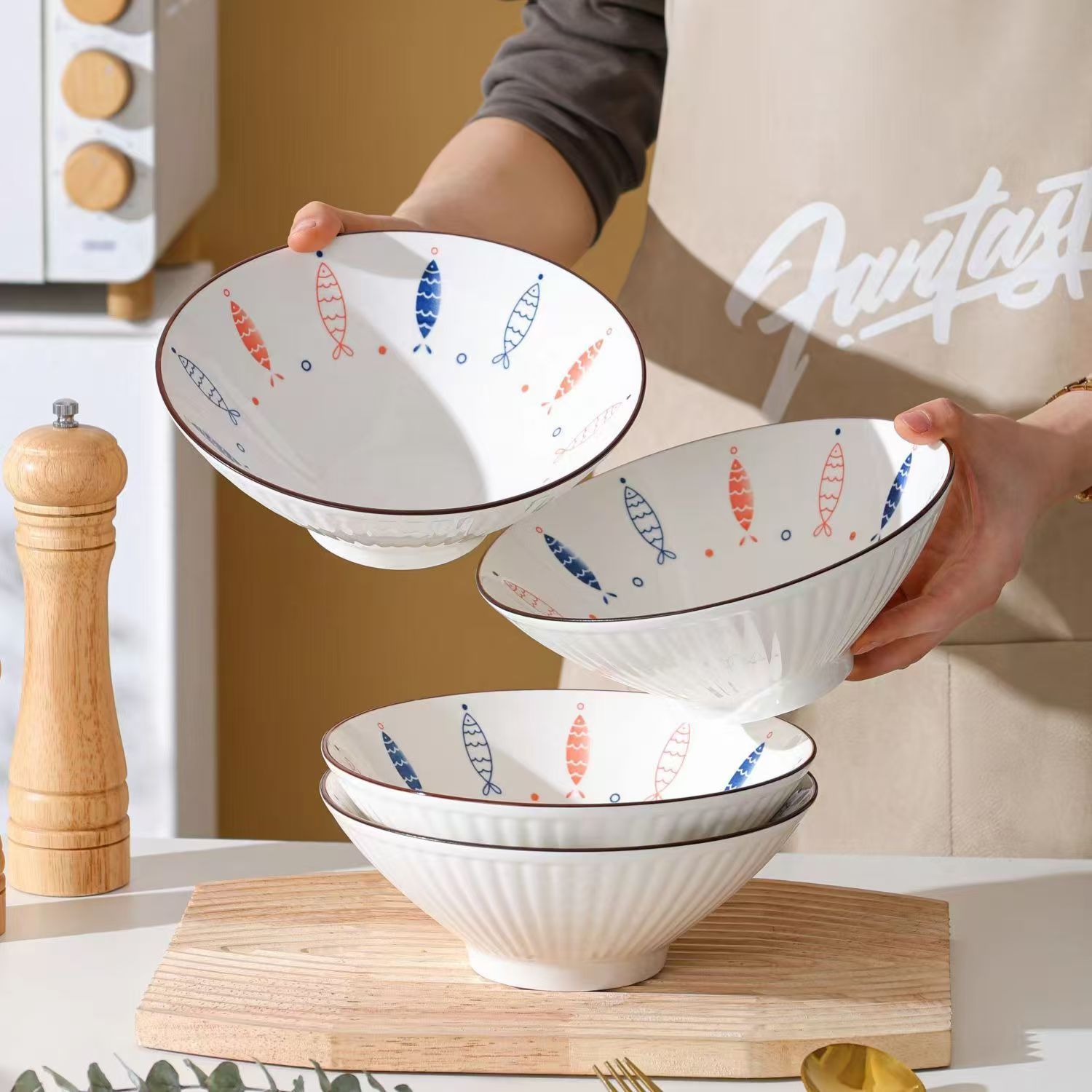 批发陶瓷餐具混级8英寸斗笠碗竖纹碗汤碗款式新创意餐具绑赠礼品