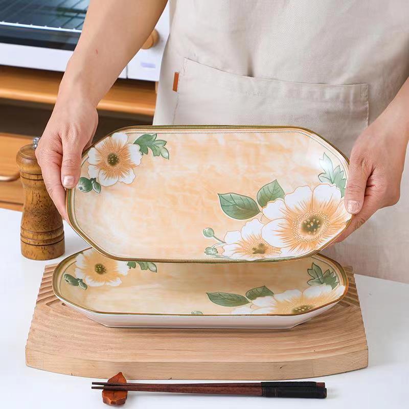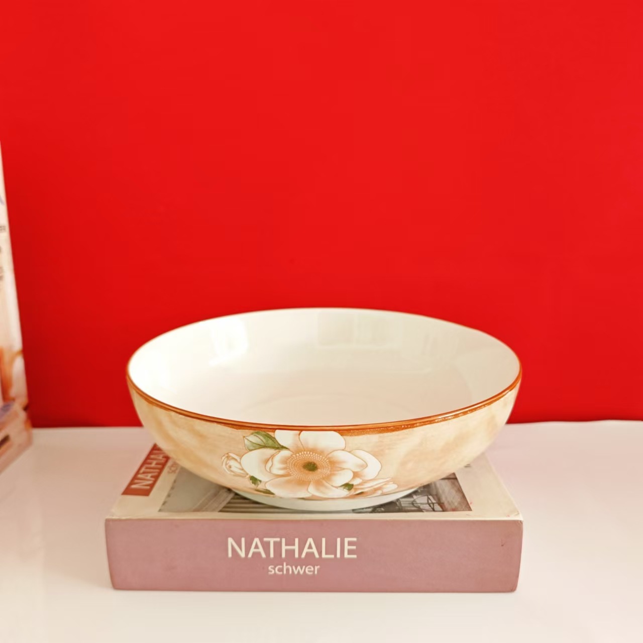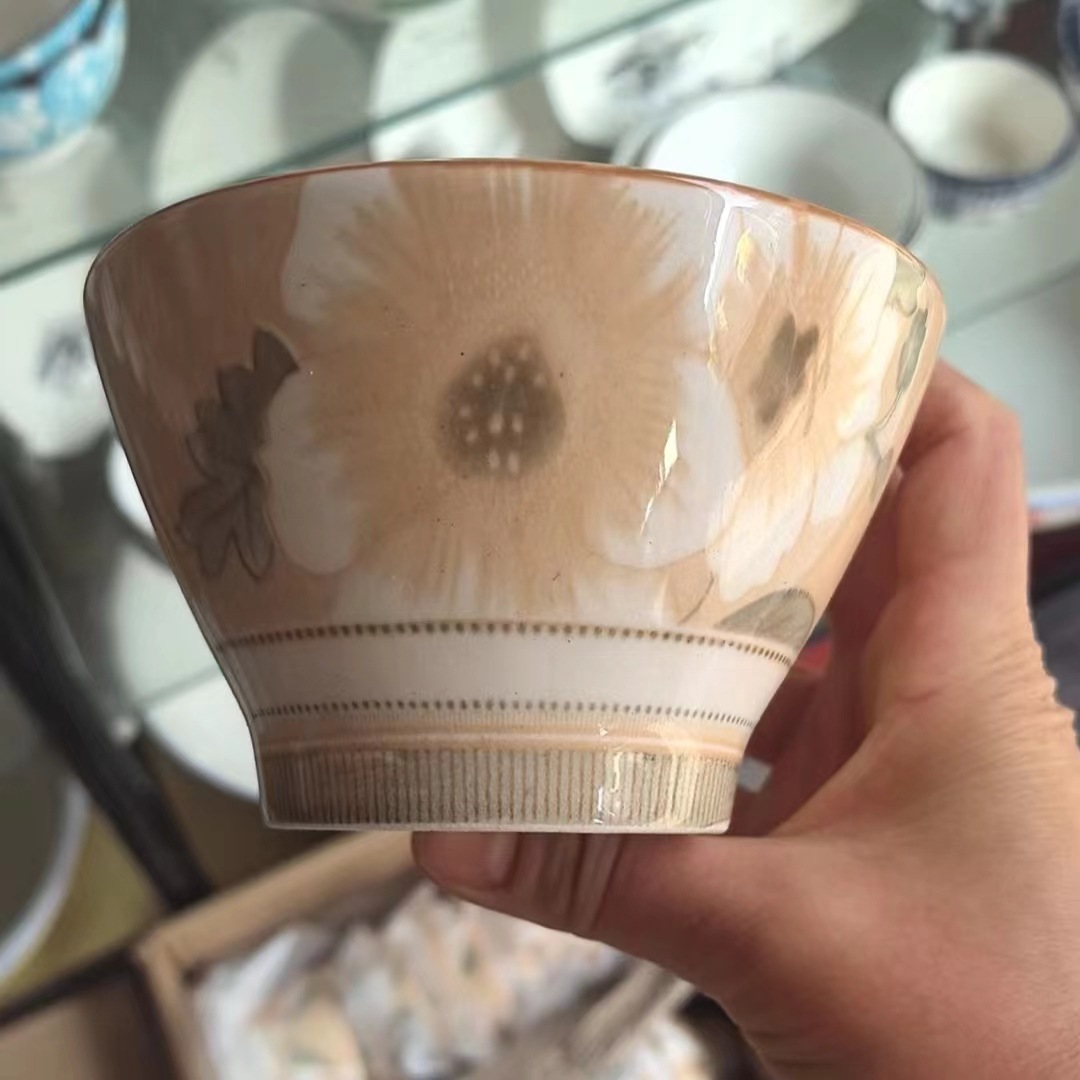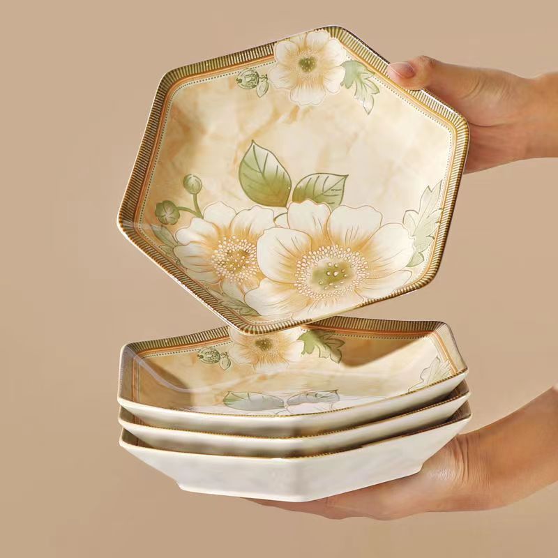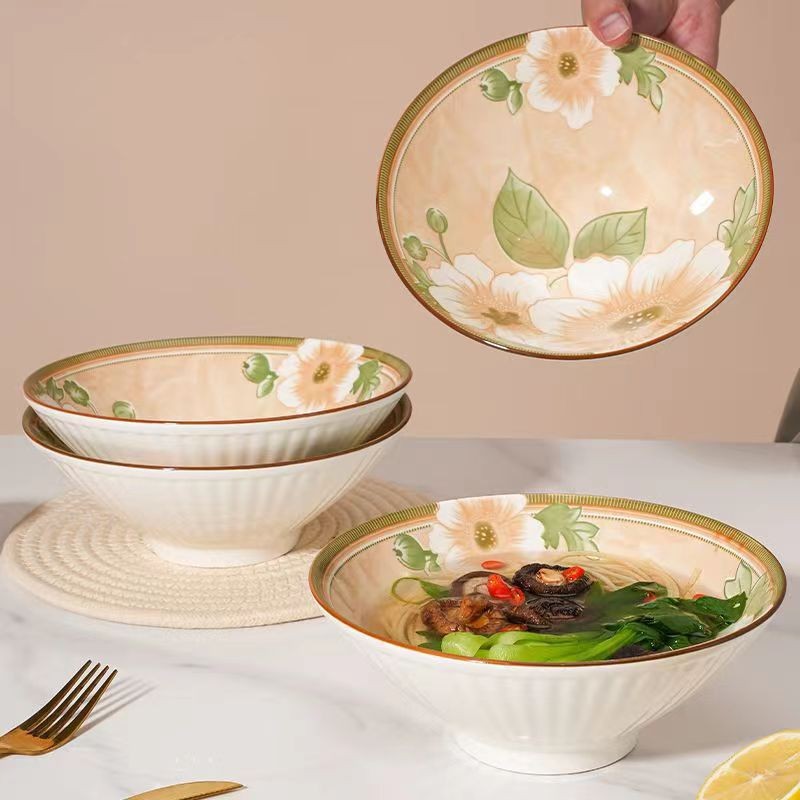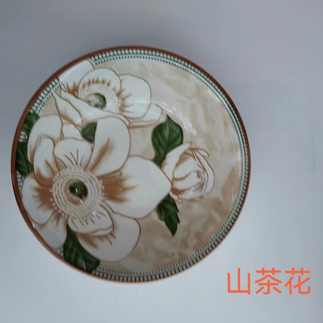 山茶花新款高颜值复古斗笠碗汤面碗菜盘饭碗碟子家庭陶瓷餐具