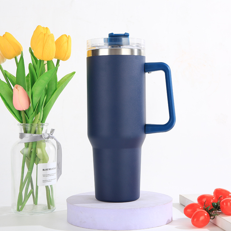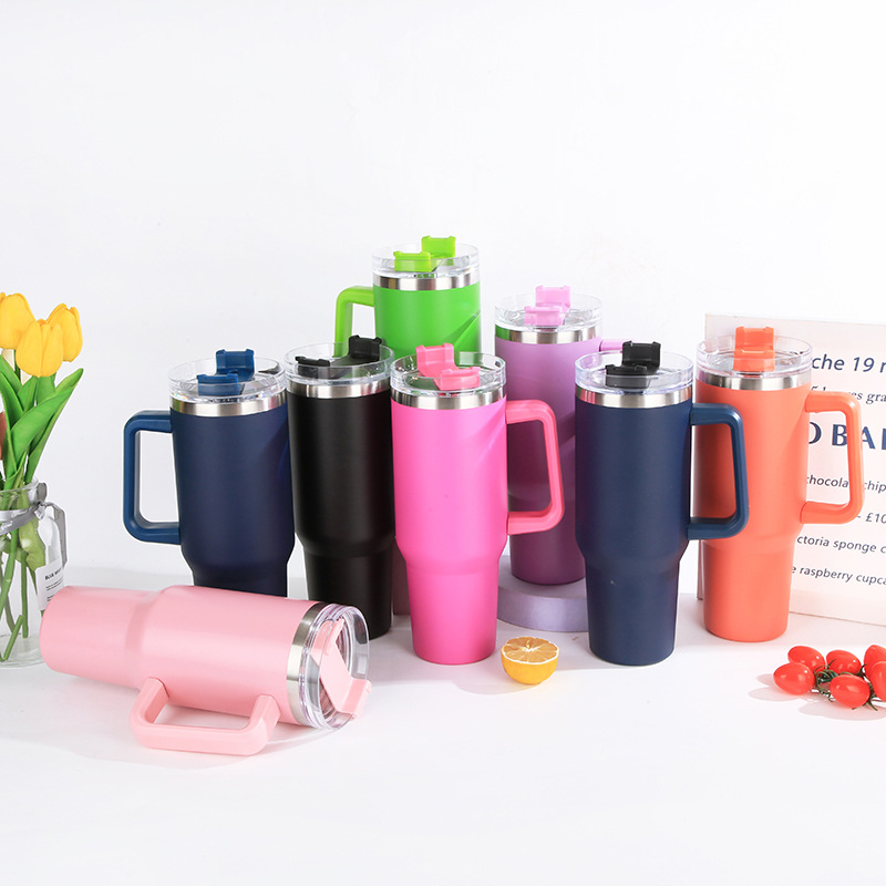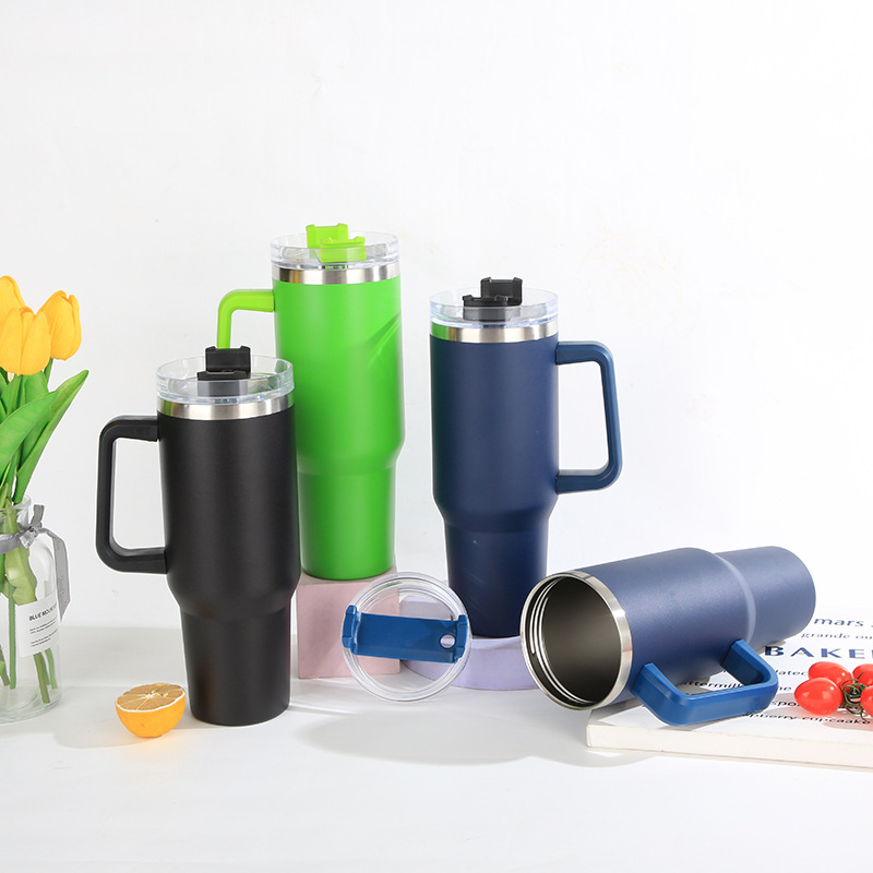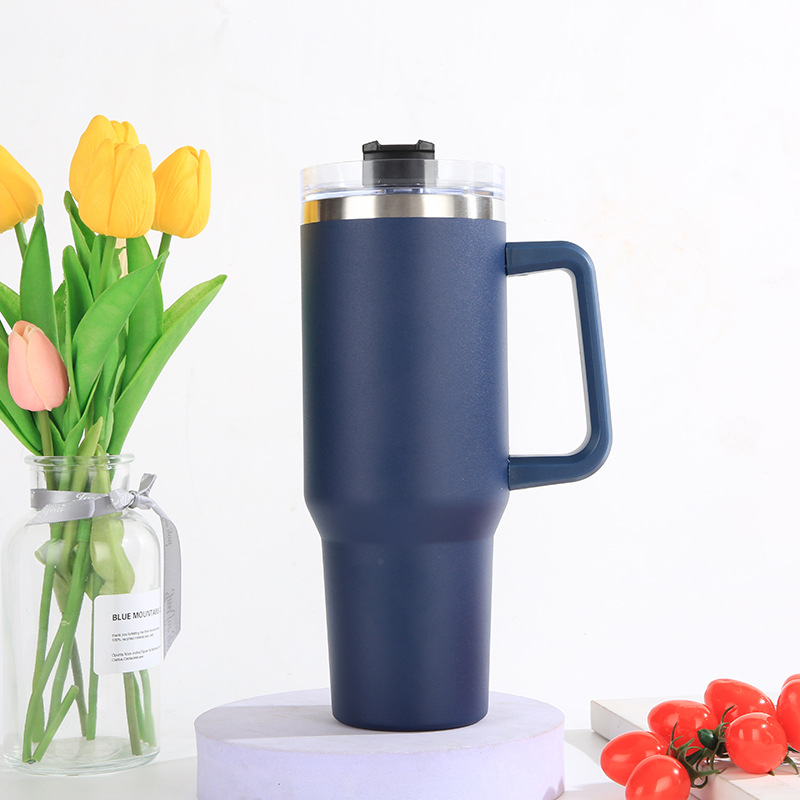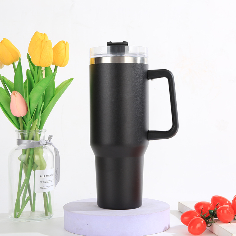 亚马逊爆款304不锈钢汽车杯大容量吸管啤酒杯40oz手柄冰霸杯批发