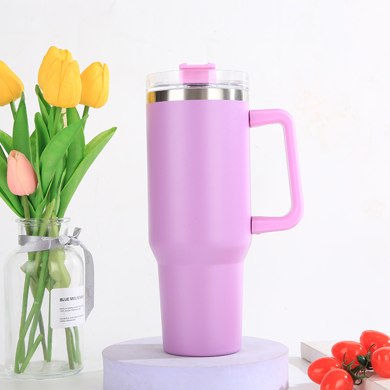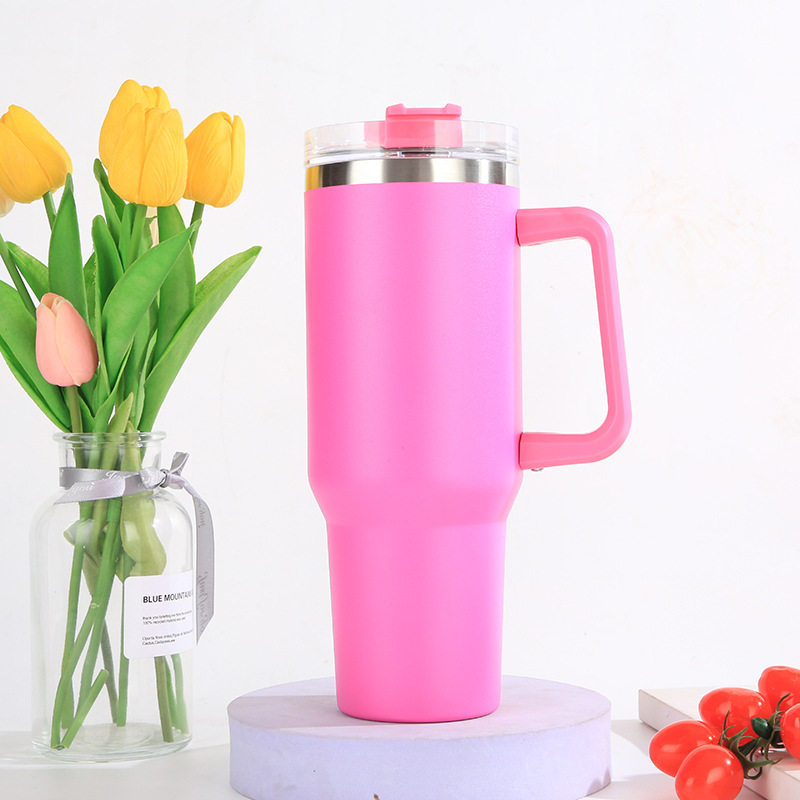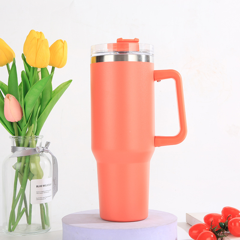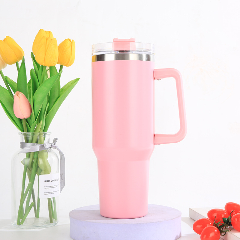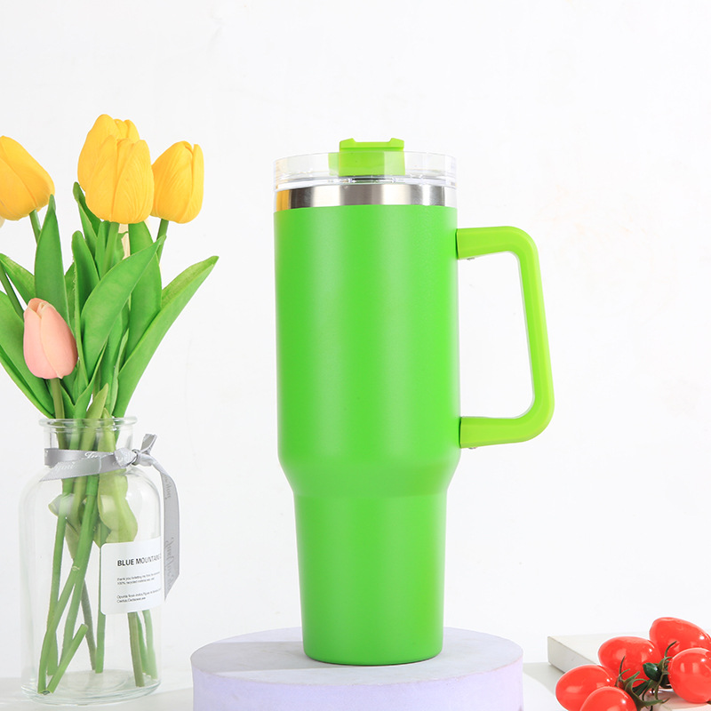 亚马逊爆款304不锈钢汽车杯大容量吸管啤酒杯40oz手柄冰霸杯批发
