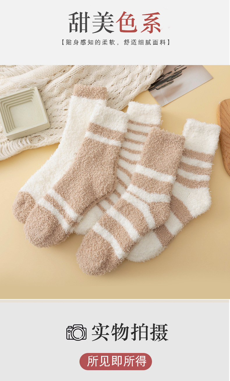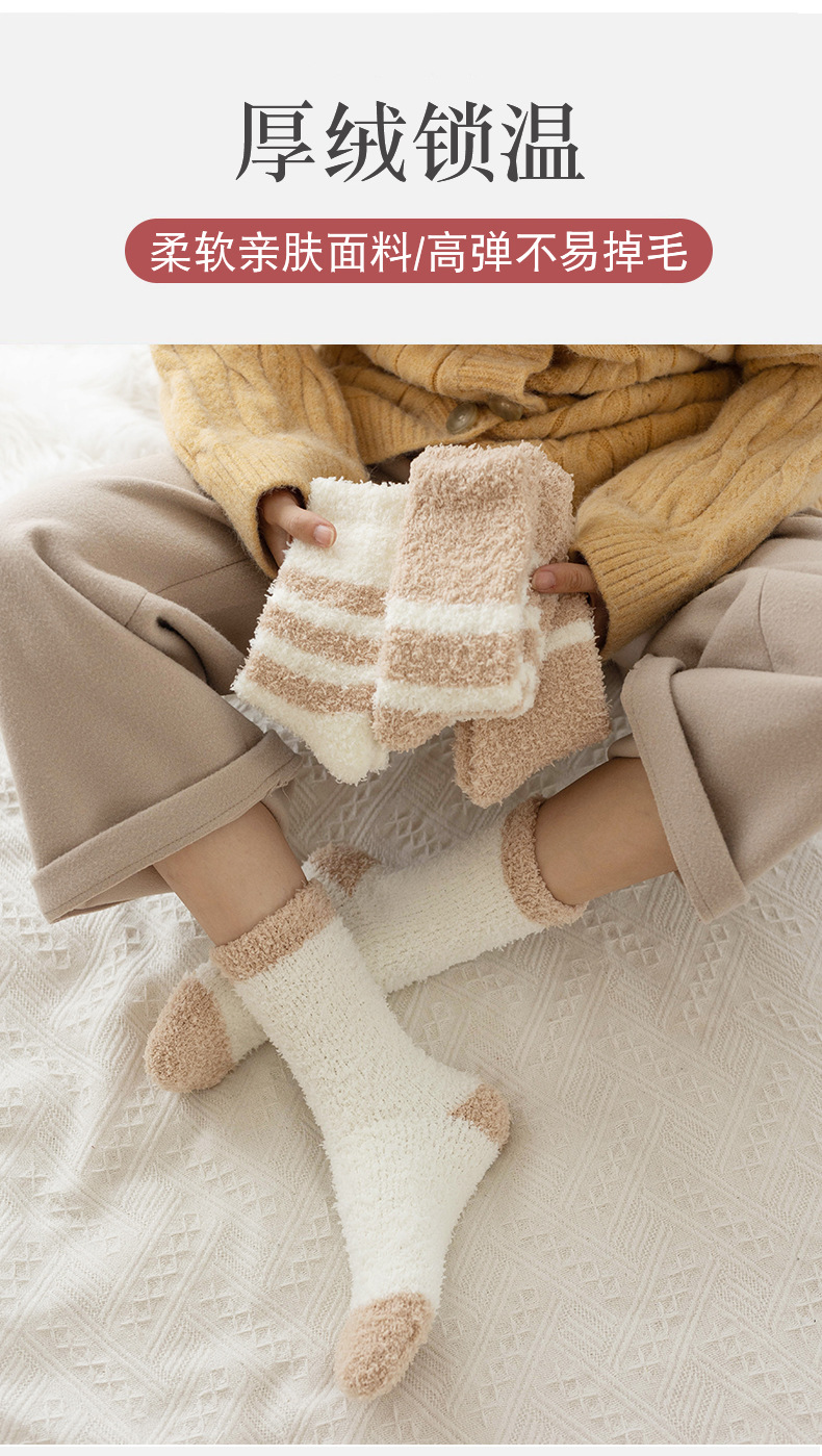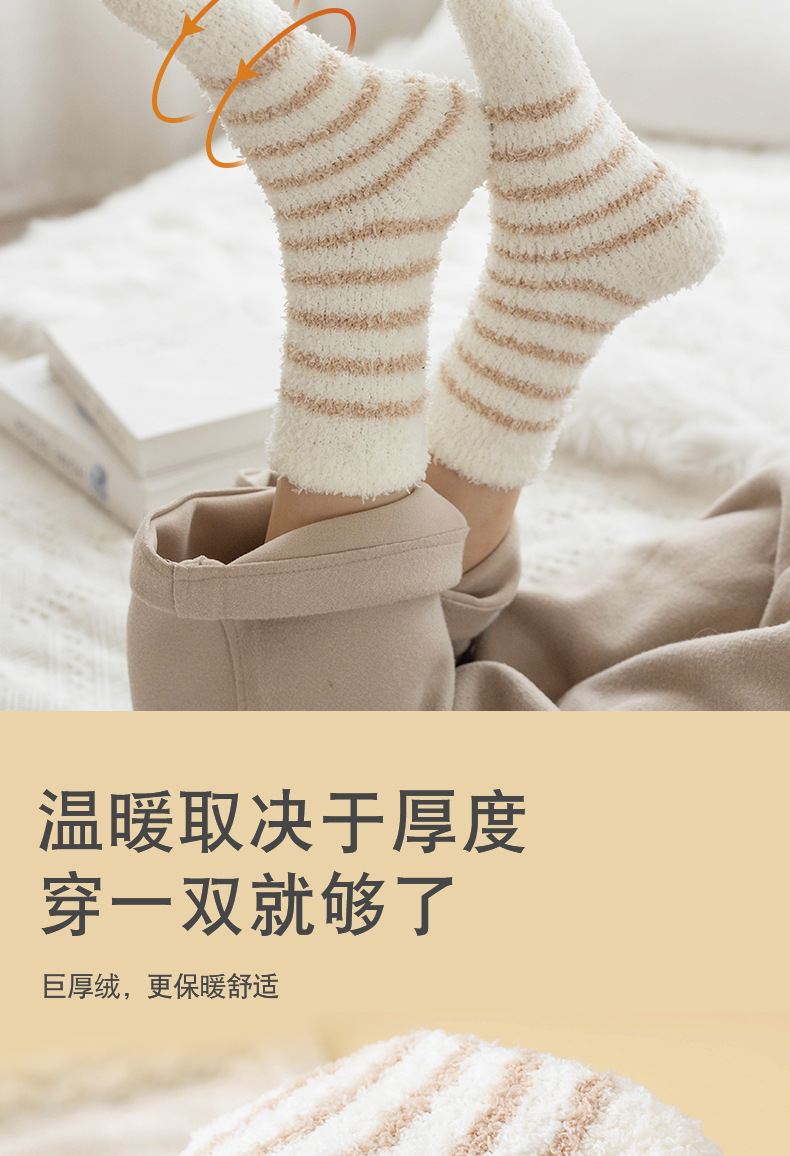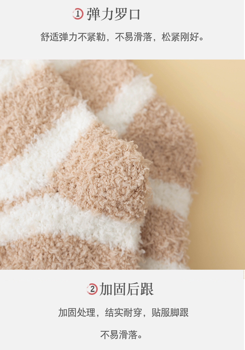 秋冬珊瑚绒睡眠袜子加厚保暖中筒居家月子袜条纹地板袜子女袜批发