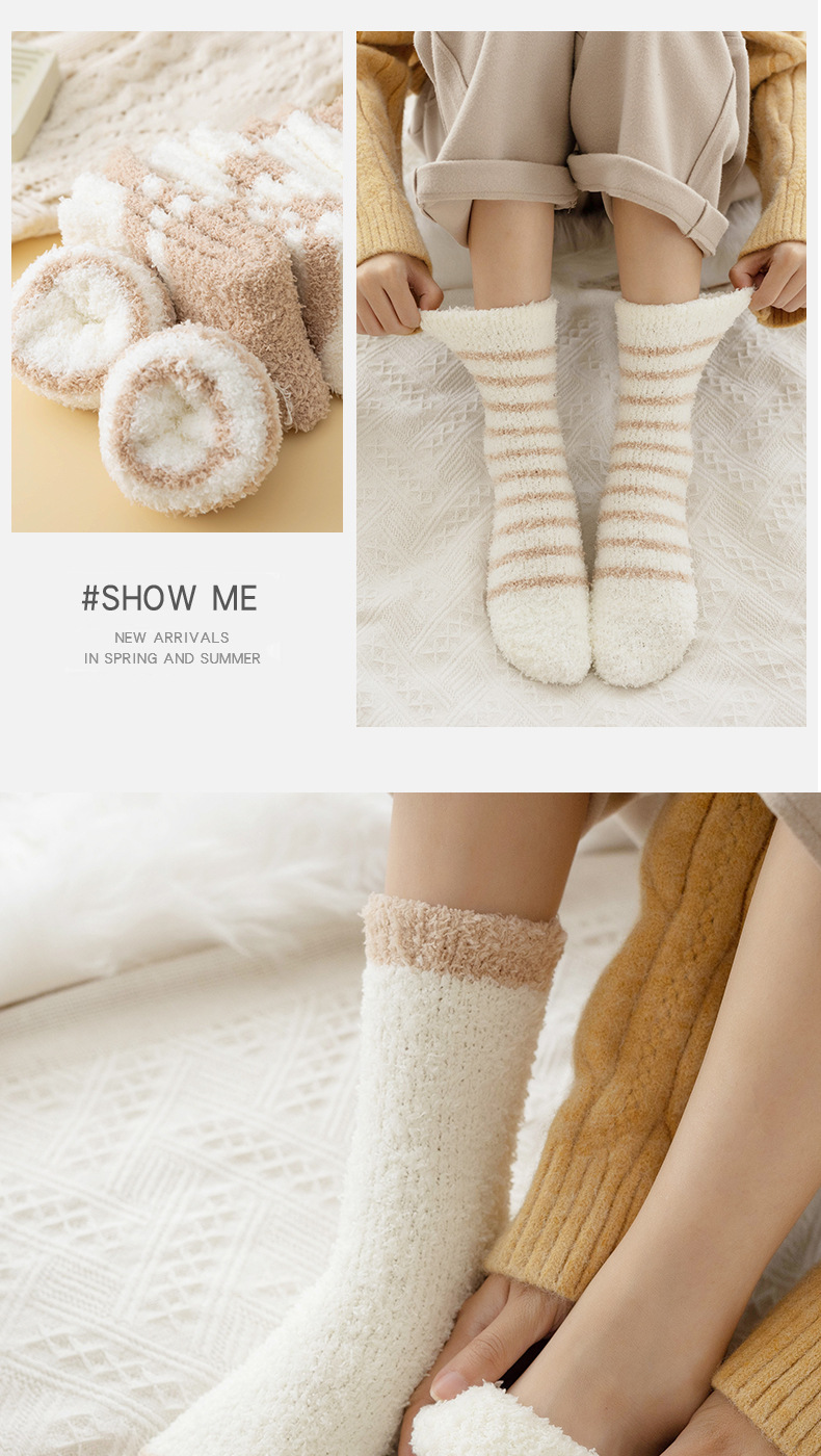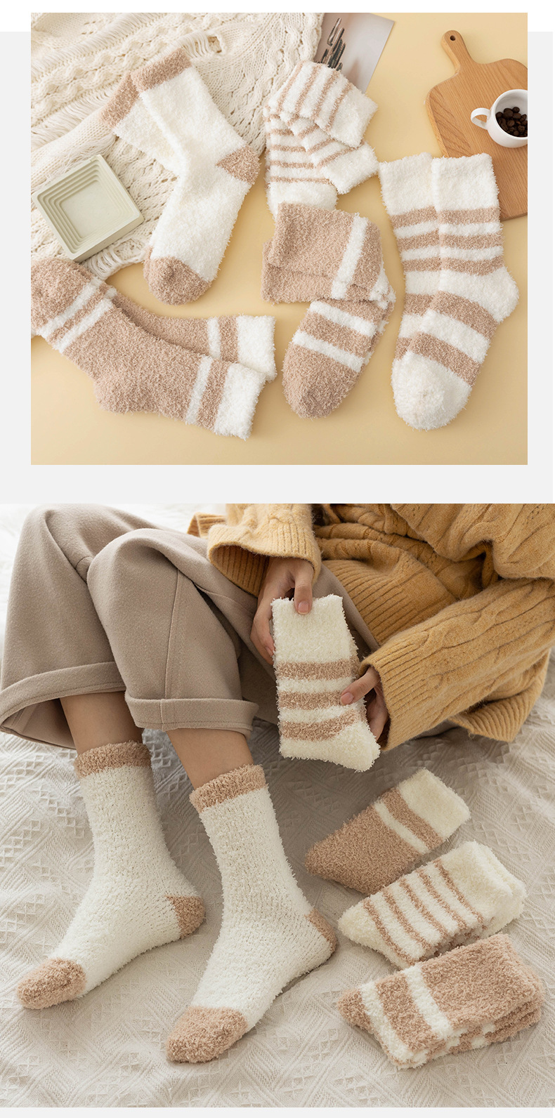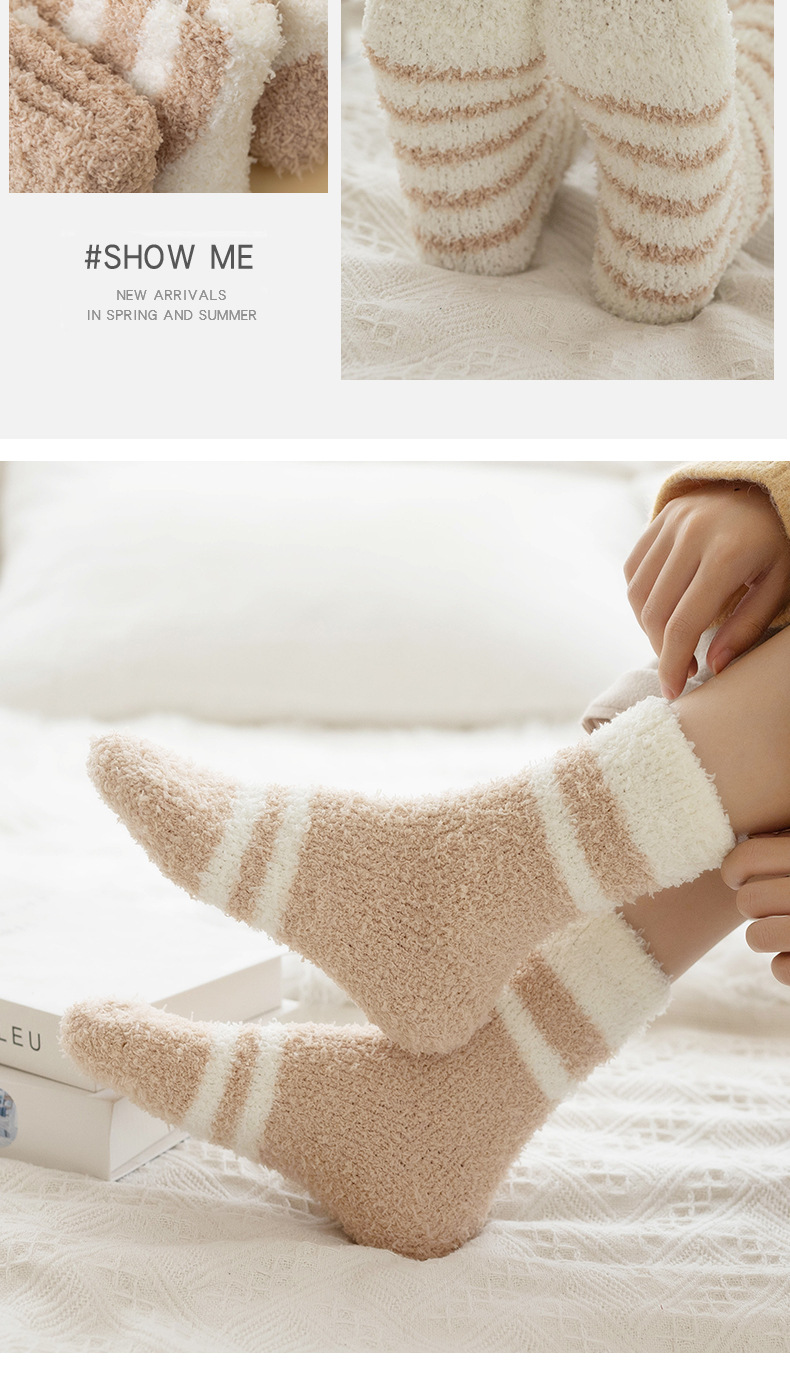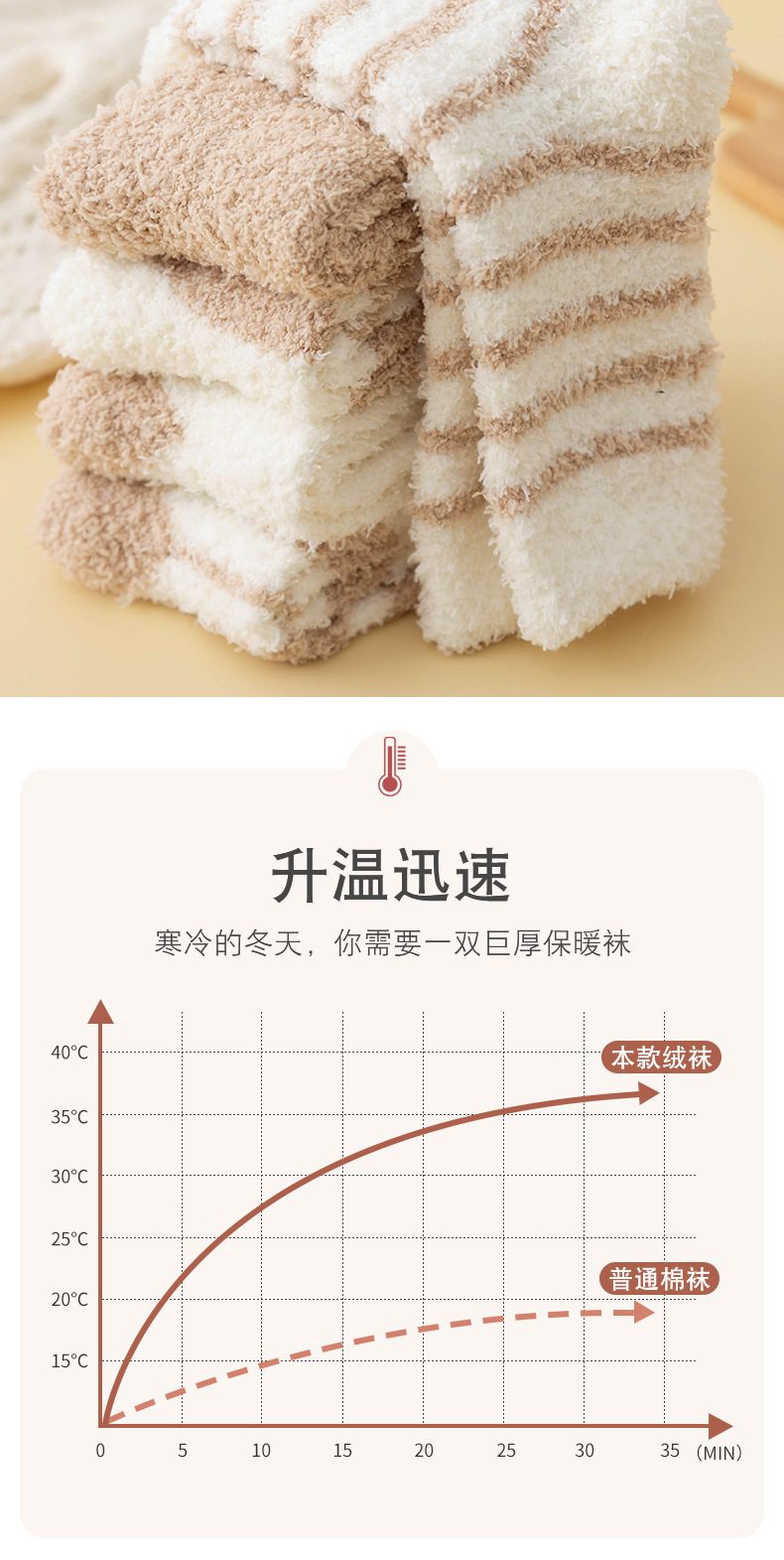 秋冬珊瑚绒睡眠袜子加厚保暖中筒居家月子袜条纹地板袜子女袜批发