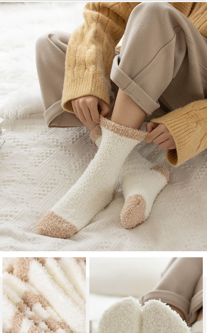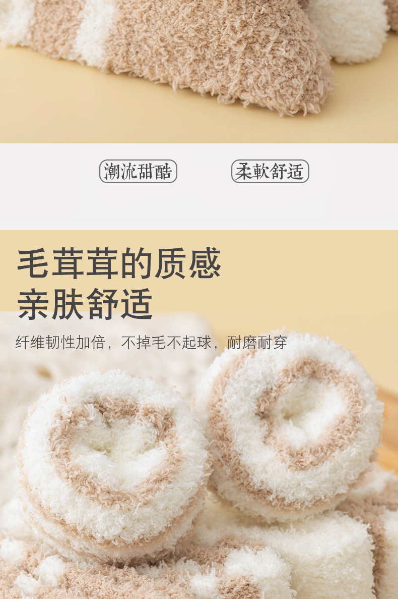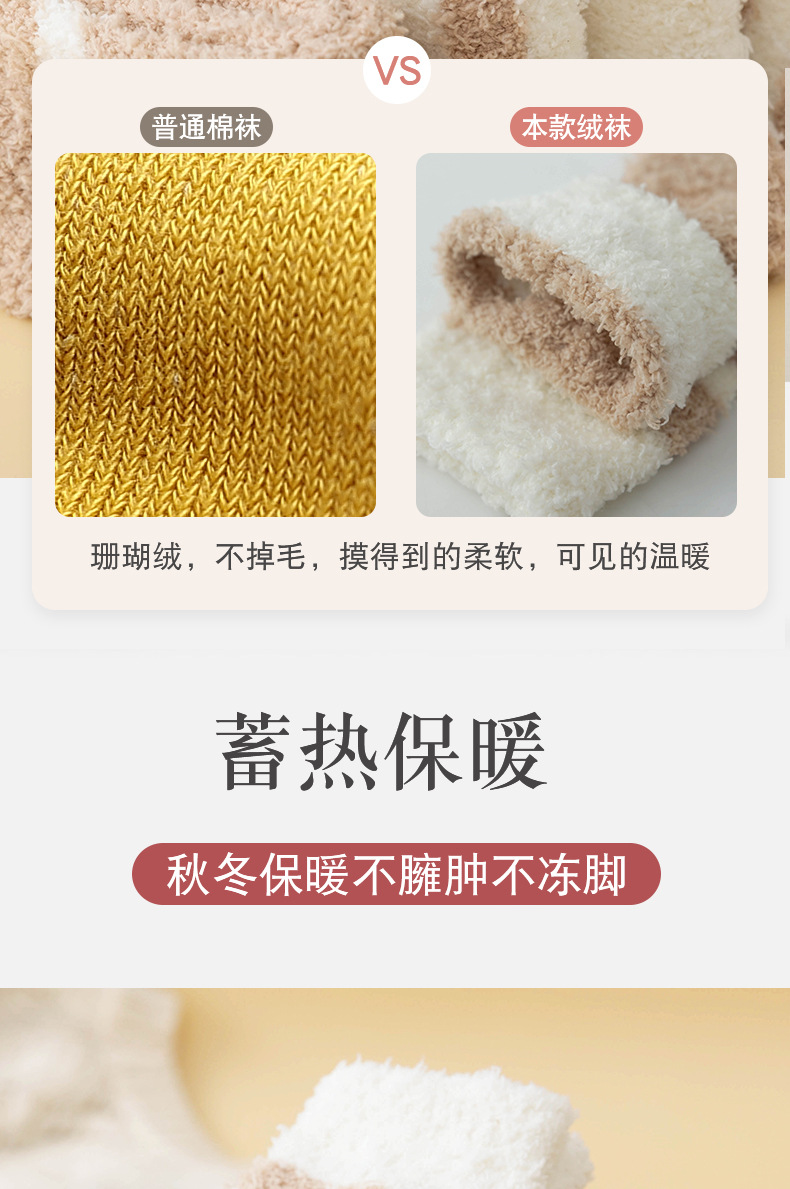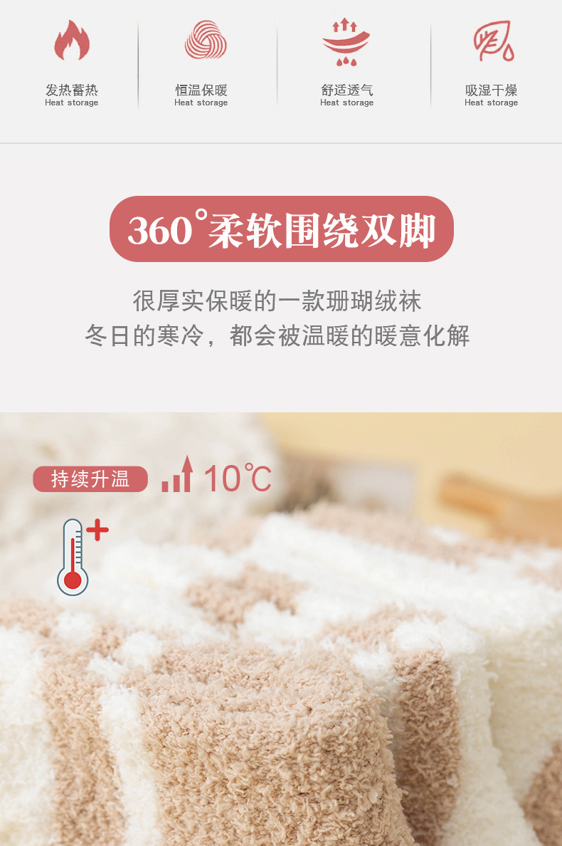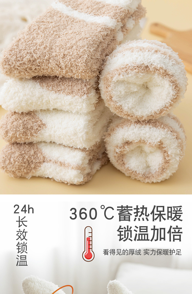 秋冬珊瑚绒睡眠袜子加厚保暖中筒居家月子袜条纹地板袜子女袜批发