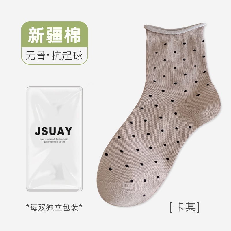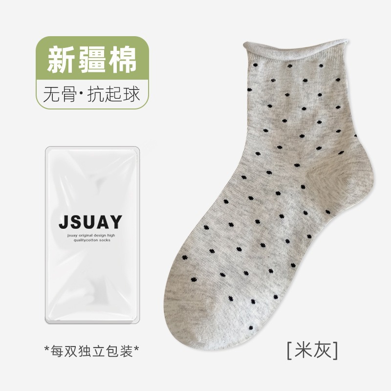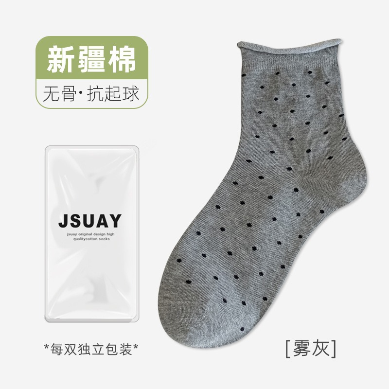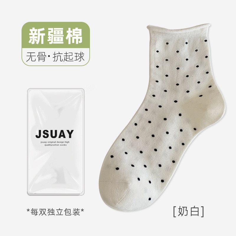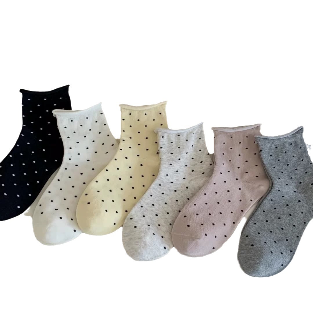 纯棉袜子女夏季薄款吸汗卷边波点中筒袜批发无骨袜堆堆袜诸暨袜业