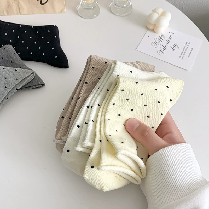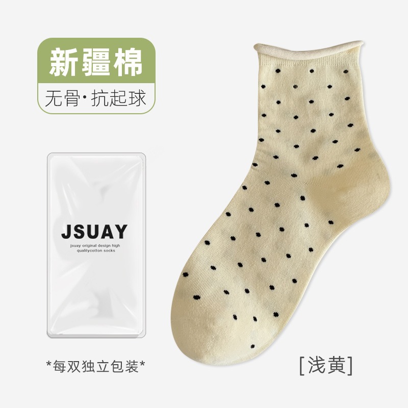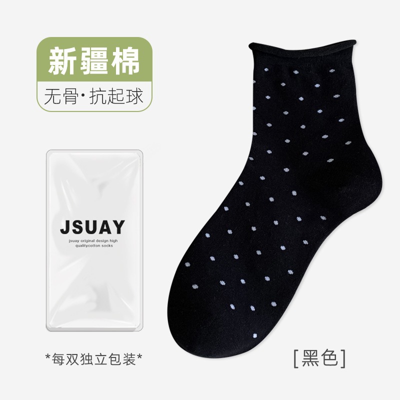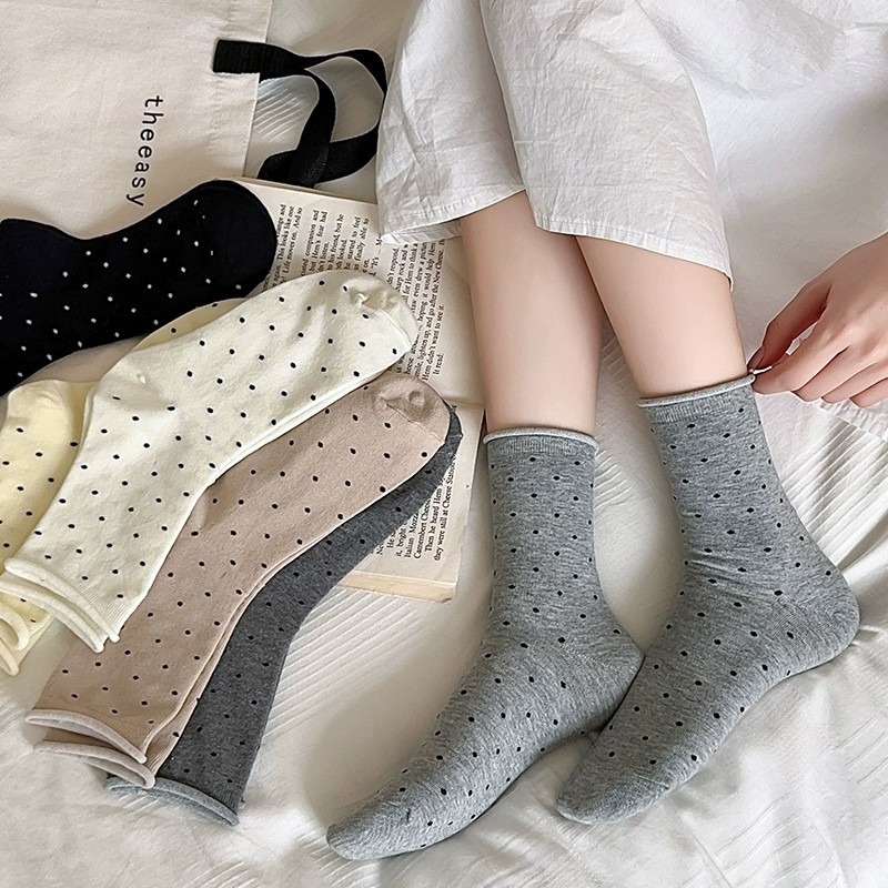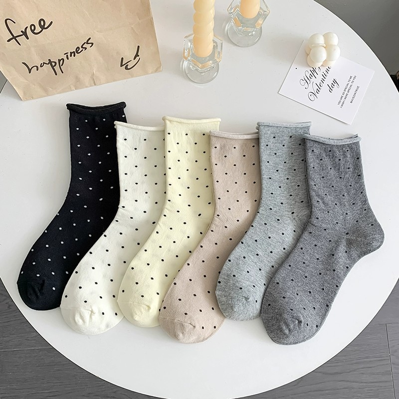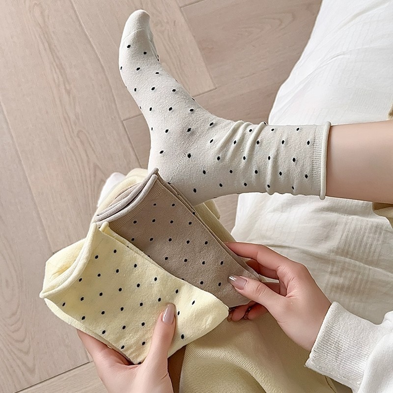 纯棉袜子女夏季薄款吸汗卷边波点中筒袜批发无骨袜堆堆袜诸暨袜业