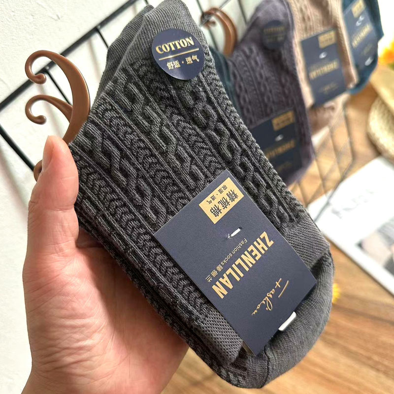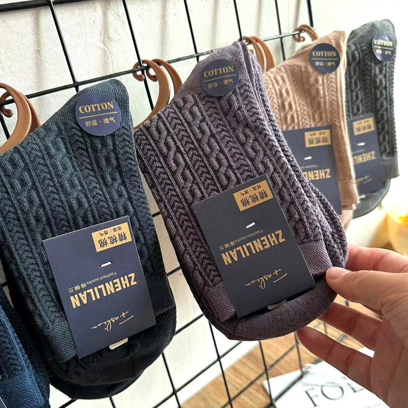 批发四季款袜子男款中筒袜商务休闲麻花长袜男生棉袜秋冬女高腰袜