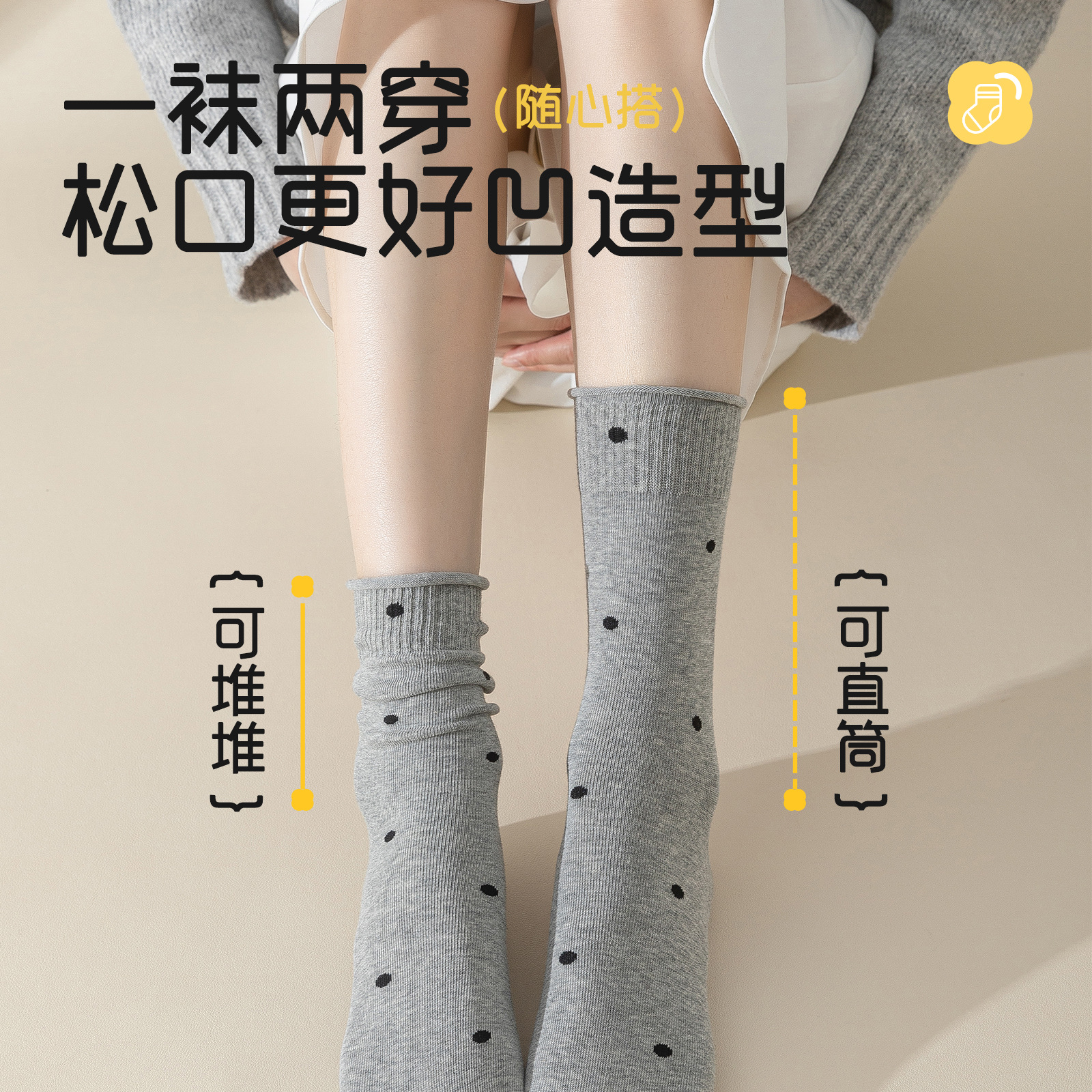 袜子女秋冬纯棉堆堆袜女波点袜卷边芭蕾风中筒袜诸暨袜业女袜批发