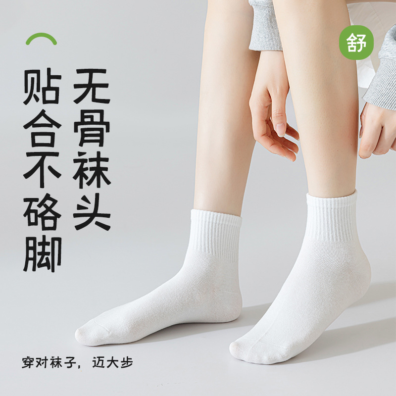 诸暨袜业纯棉袜子女秋冬无骨袜运动袜吸汗防臭女袜批发秋季中筒袜