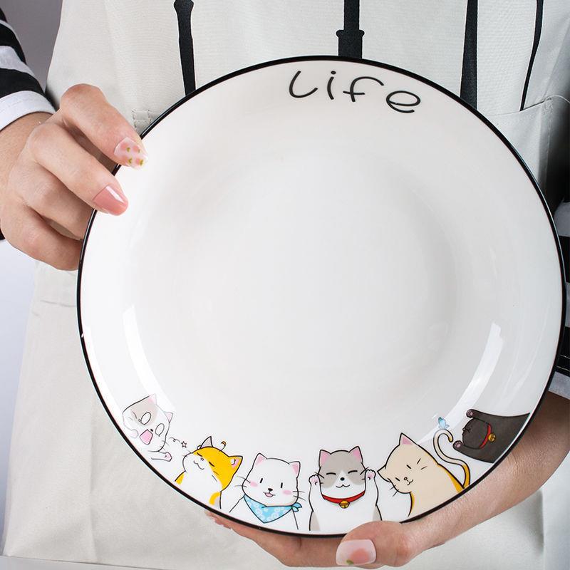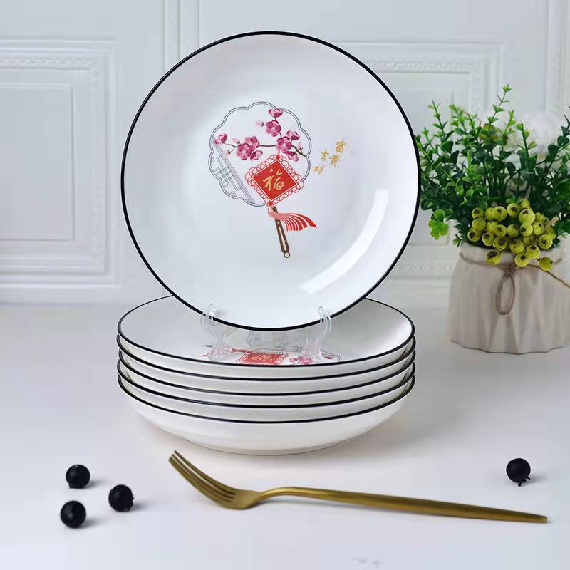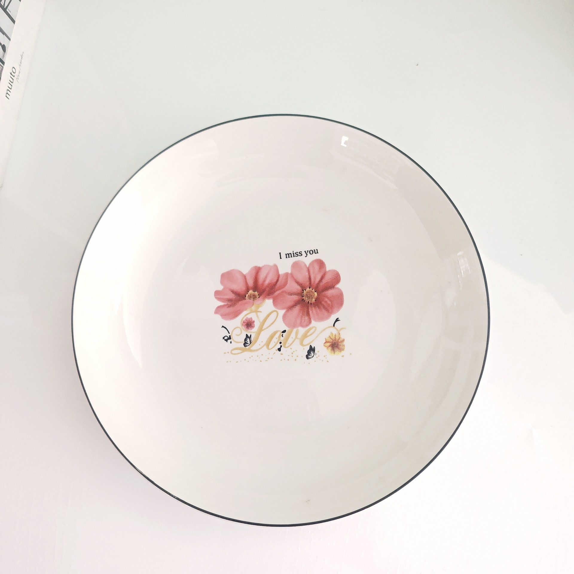 北欧陶瓷8英寸饭盘果盘家用热菜盘日用陶瓷餐具瓷器 两元店超市