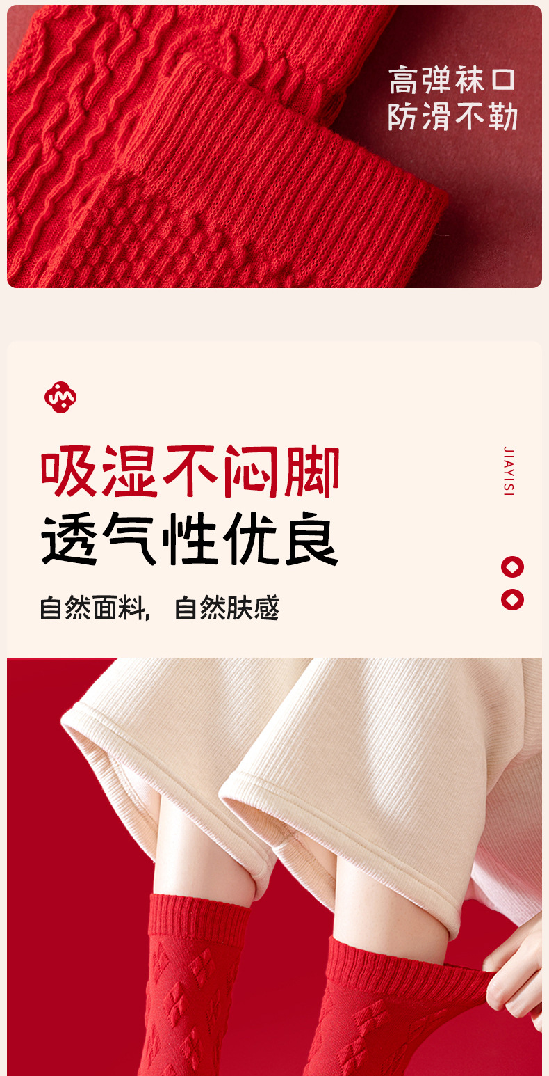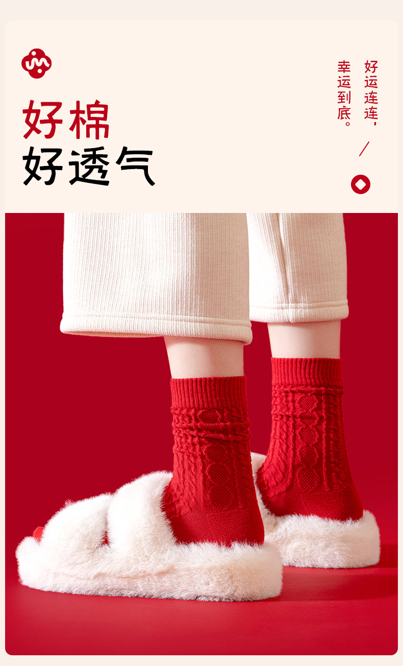 诸暨袜业袜子女秋冬大红袜独立包装纯色棉袜中国红本命年袜子批发