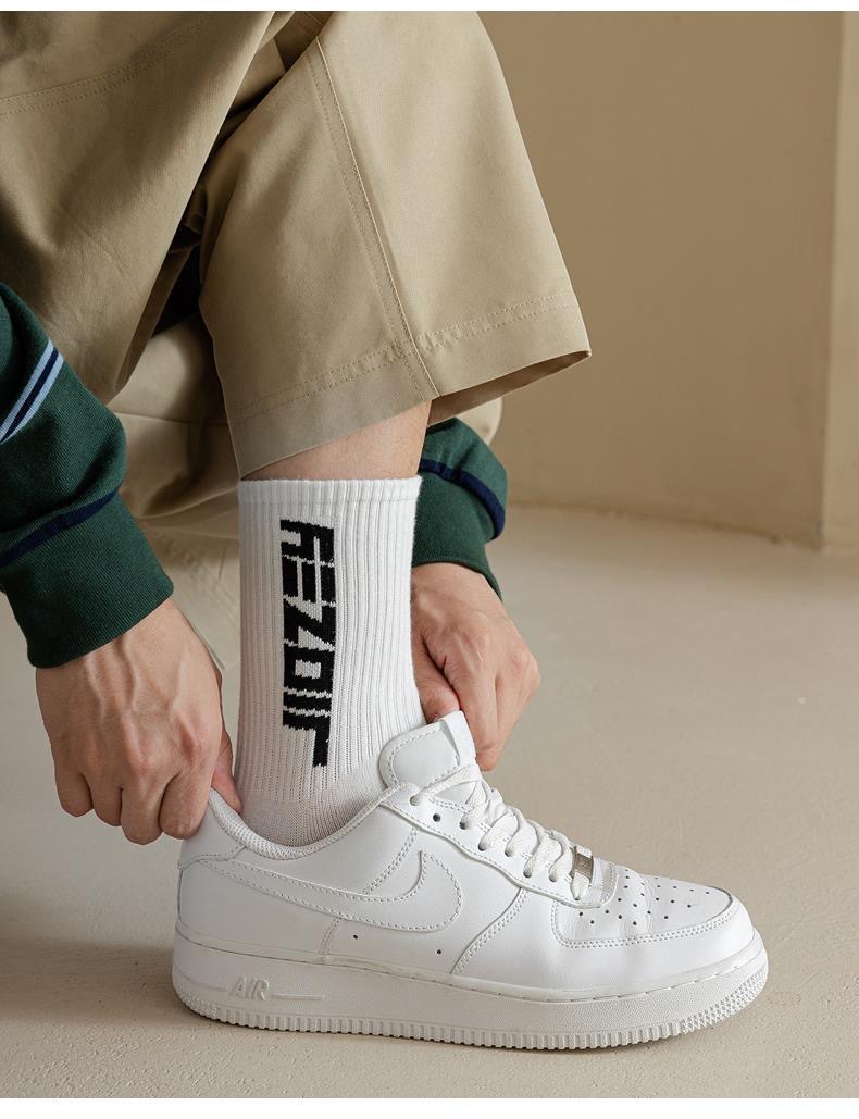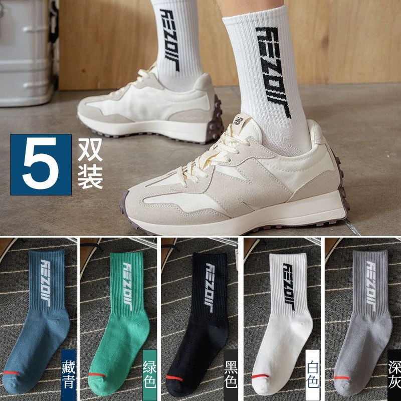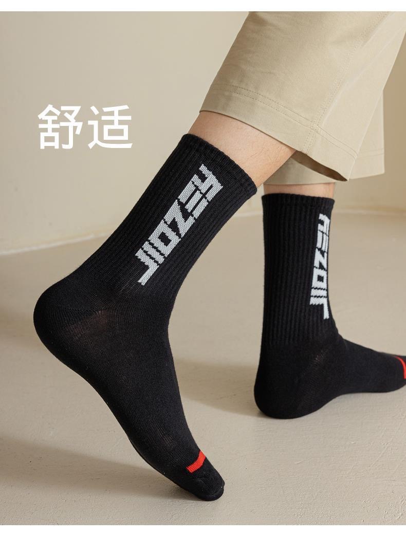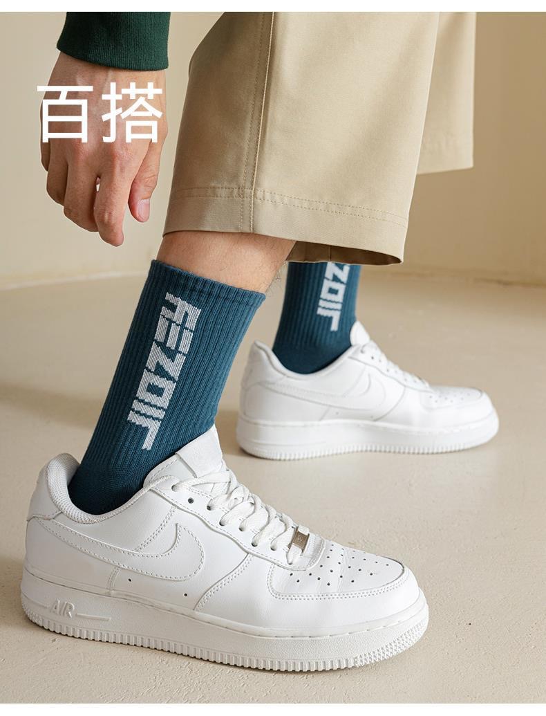 男士字母中筒袜秋冬休闲透气潮流长袜篮球男生个性运动袜子