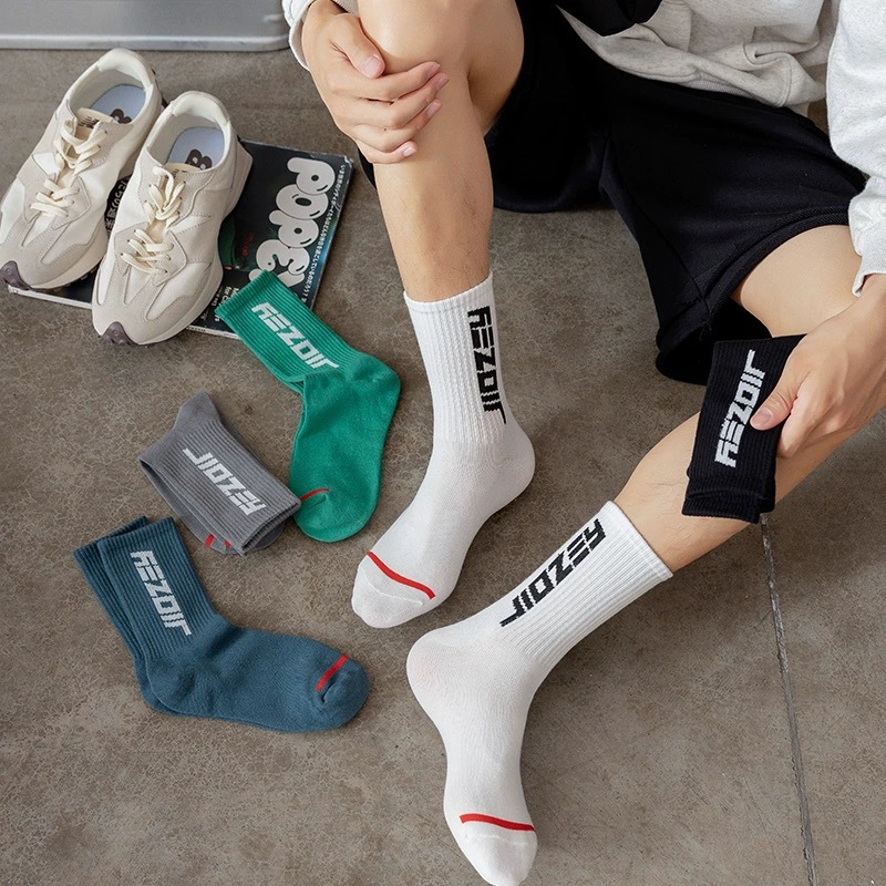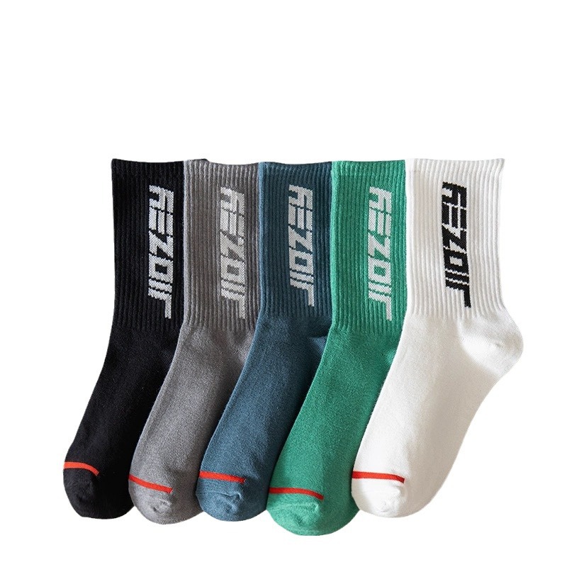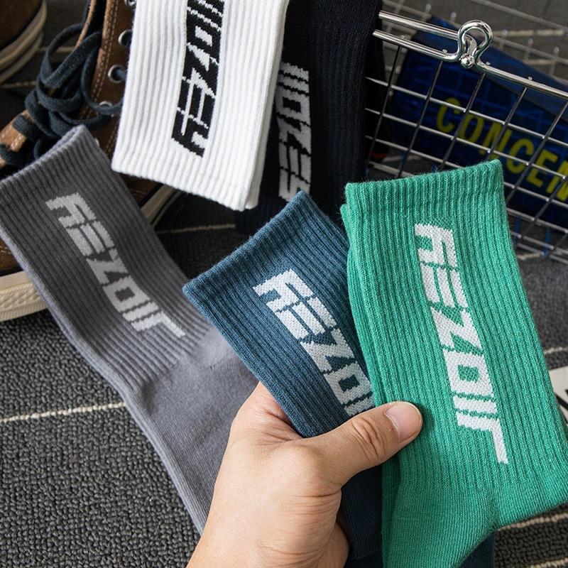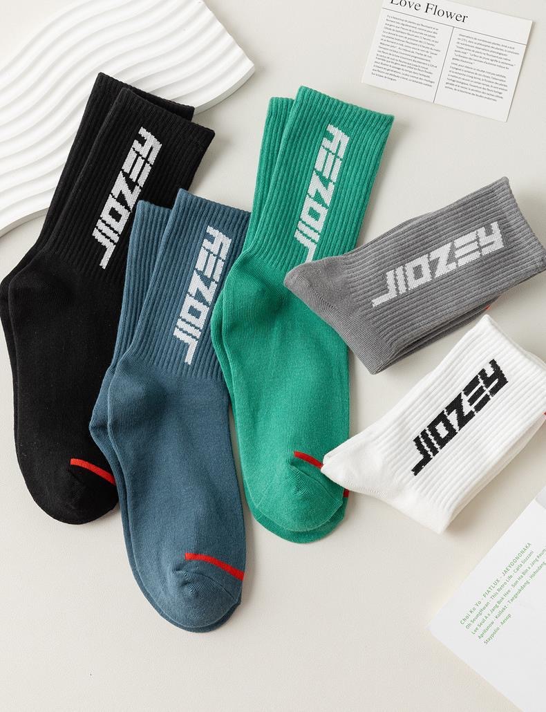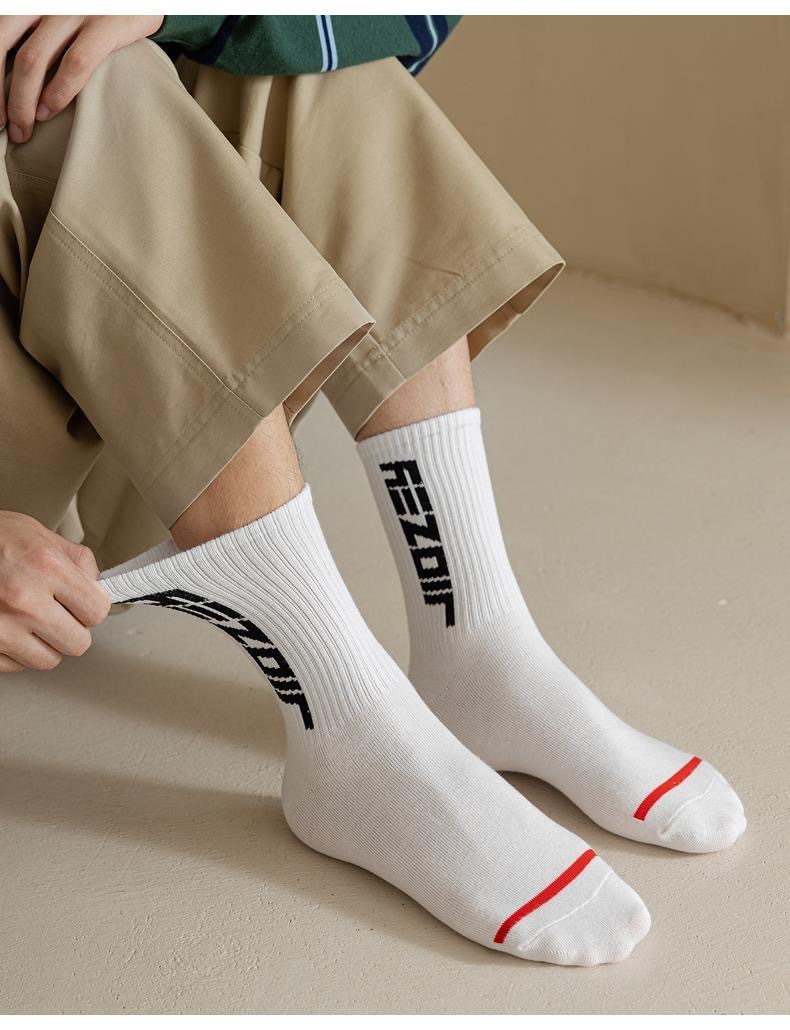 男士字母中筒袜秋冬休闲透气潮流长袜篮球男生个性运动袜子