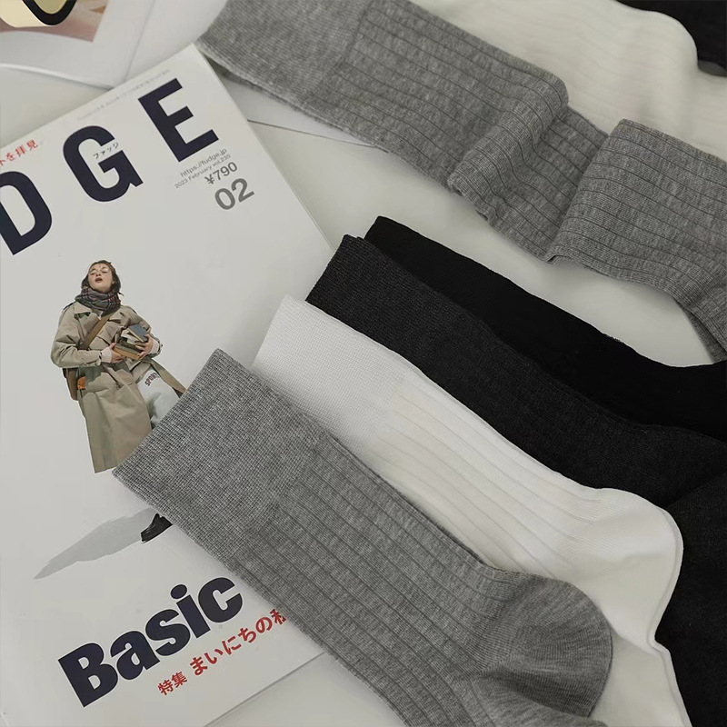 plusox新品黑白袜子春夏韩版长筒袜棉袜中筒袜及膝袜ins潮袜批发
