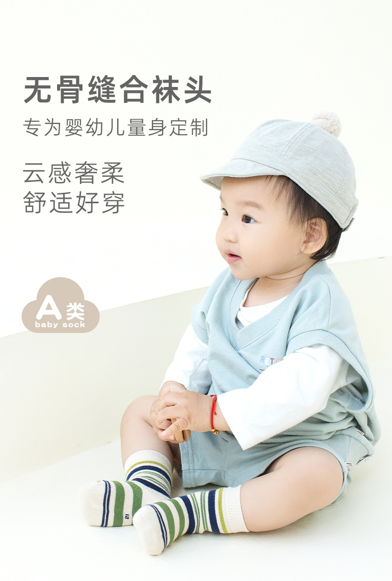 婴儿袜子春秋季无骨松口宝宝袜子初生婴幼儿男童女童儿童中筒棉袜