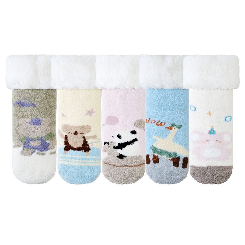 新生婴儿袜子冬季新款加绒加厚保暖无骨松口不勒男女童儿童中筒袜
