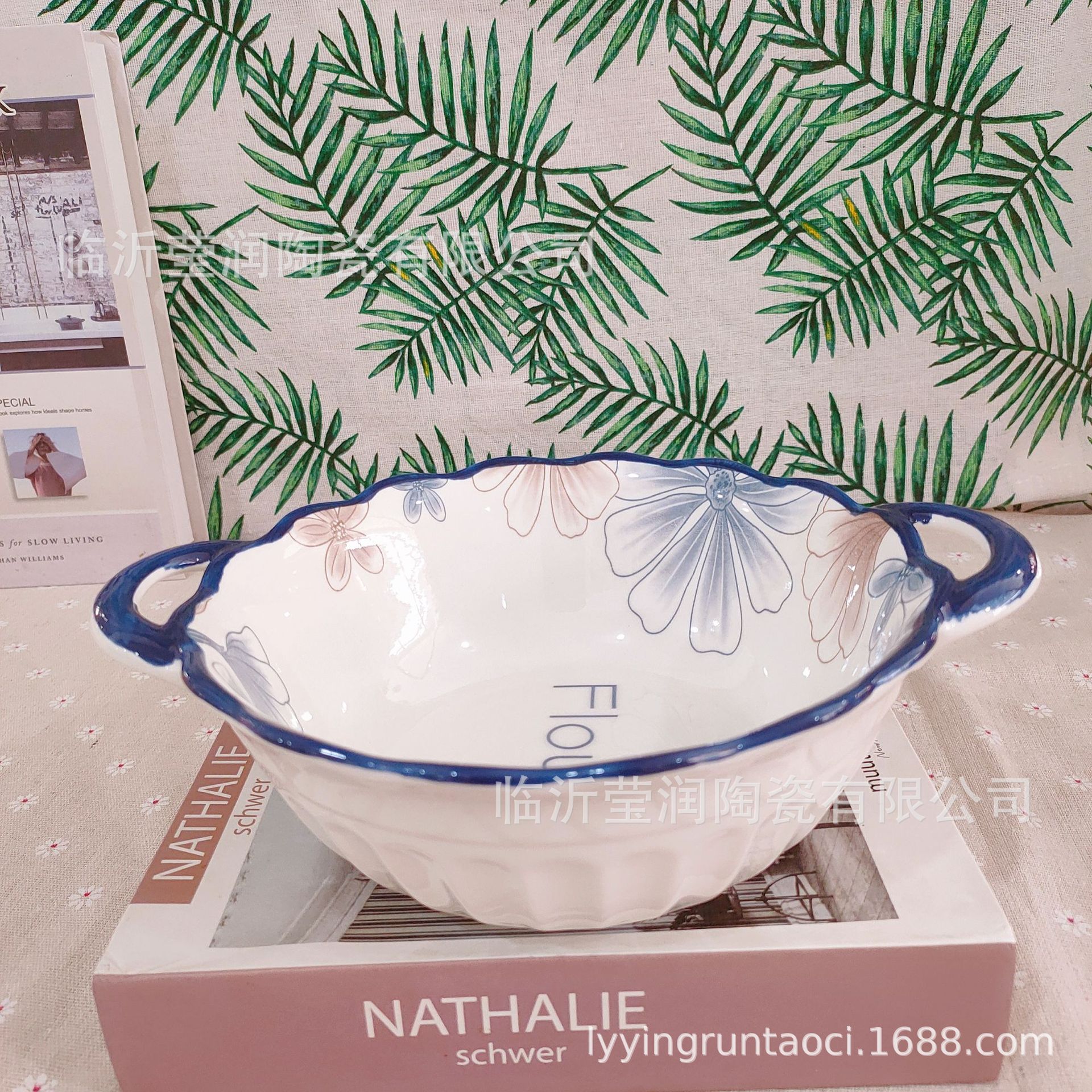 新到小清新兰棕大花系列家用碗盘米饭碗高颜值汤碗果盘菜盘鱼盘