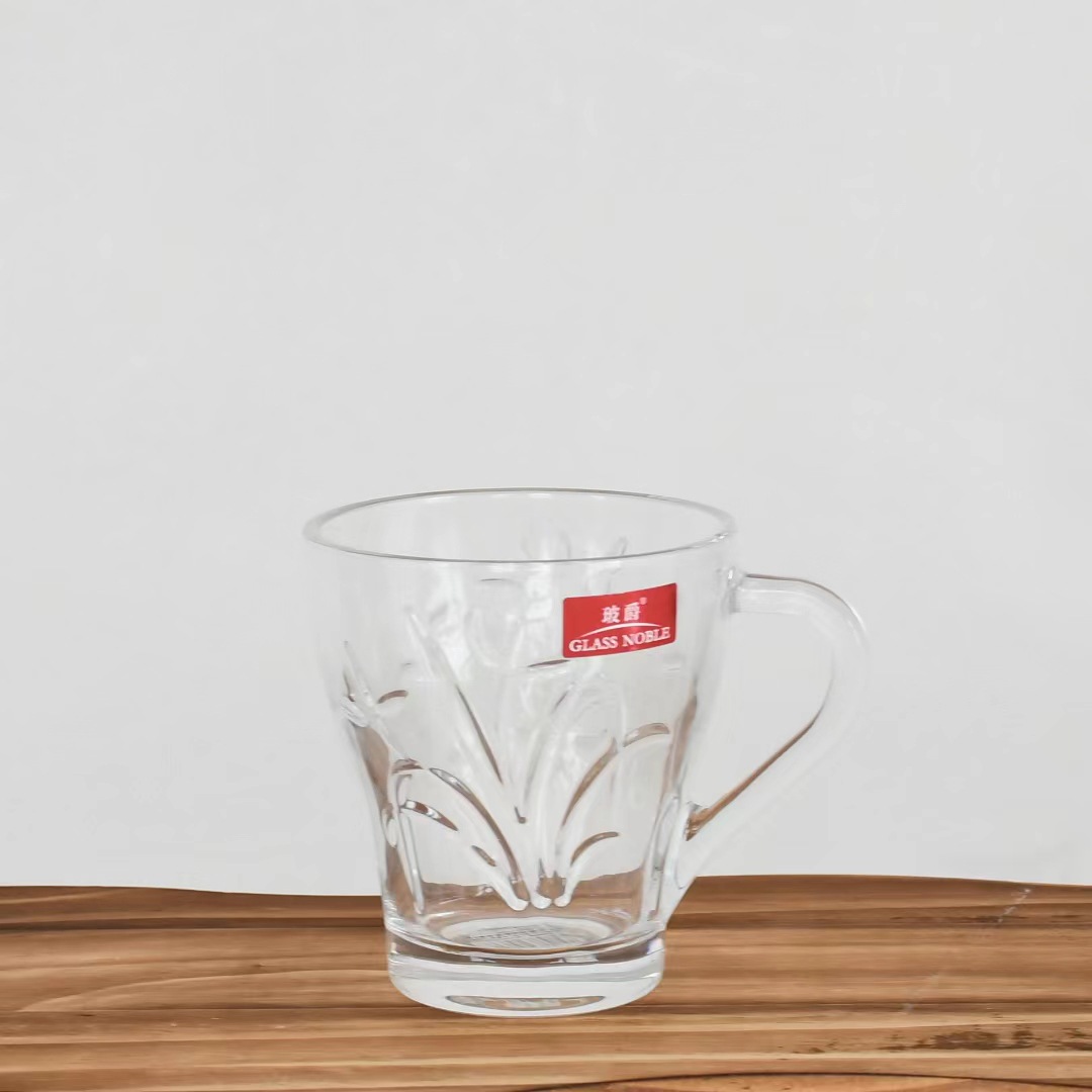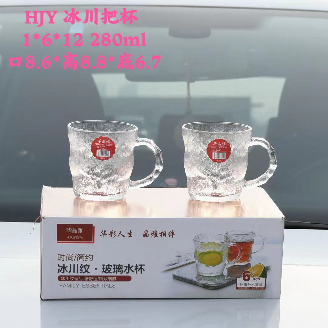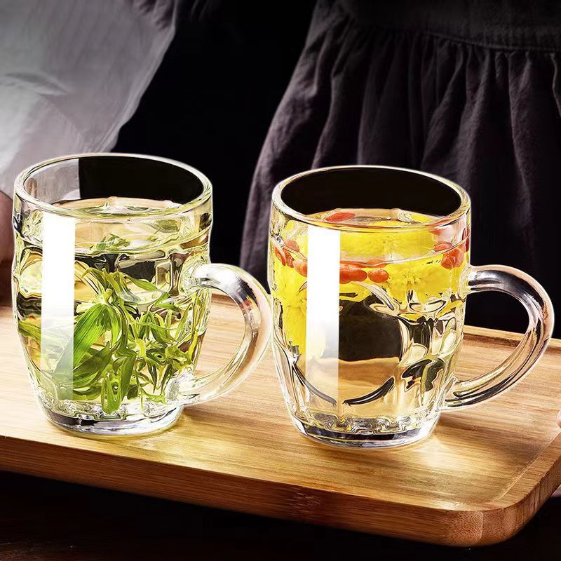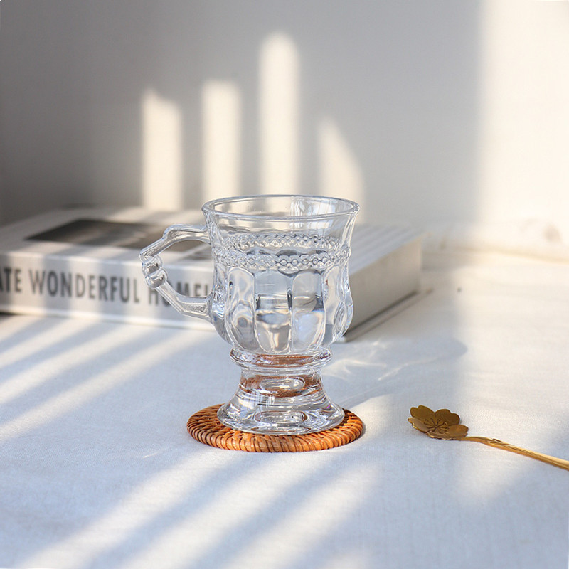 家用玻璃杯网红冰川杯复古浮雕玻璃杯咖啡杯高颜值早餐带把玻璃杯