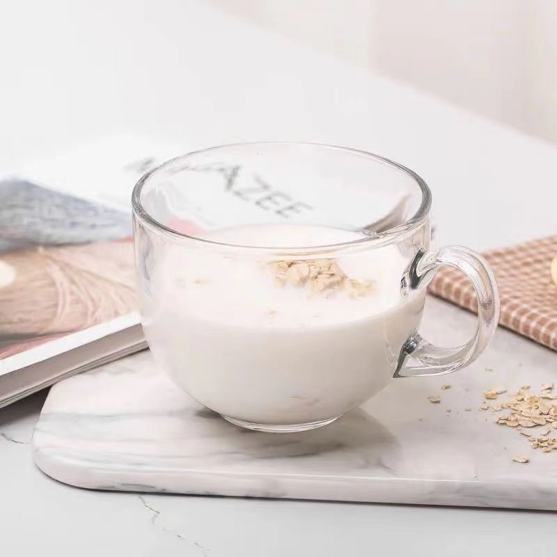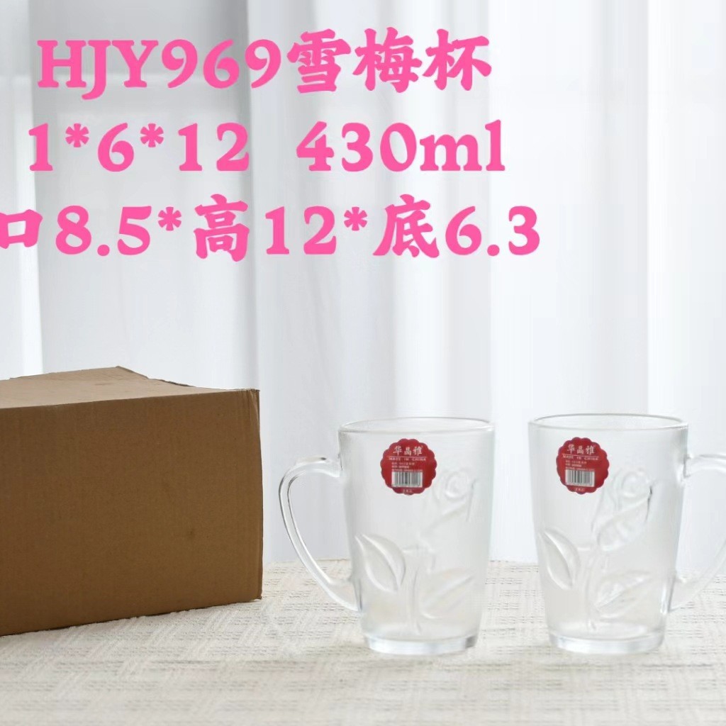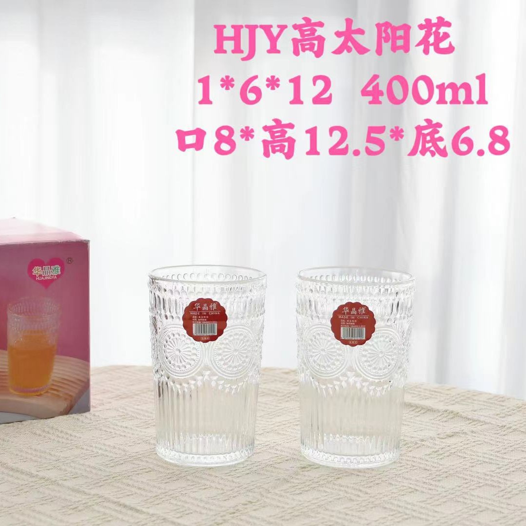 家用玻璃杯网红冰川杯复古浮雕玻璃杯咖啡杯高颜值早餐带把玻璃杯