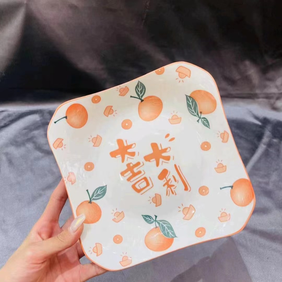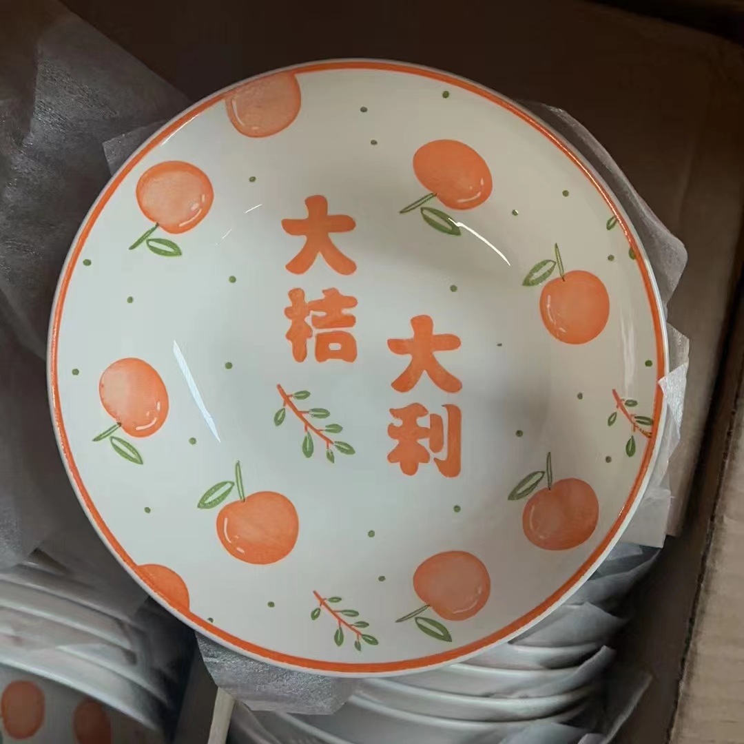厂销大桔大利创意陶瓷碗盘家用米饭碗水果盘汤碗沙拉盘网红餐具