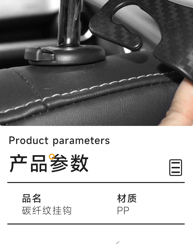 批发汽车用碳纤纹挂钩座椅背车内多功能物品头枕座位靠背车载挂钩