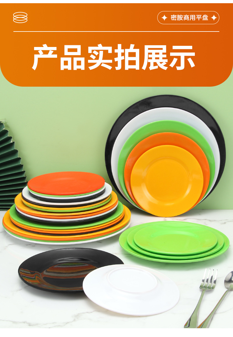 塑料盘子碟子彩色圆盘仿瓷圆形平盘骨碟密胺小吃盘美耐皿餐具批发