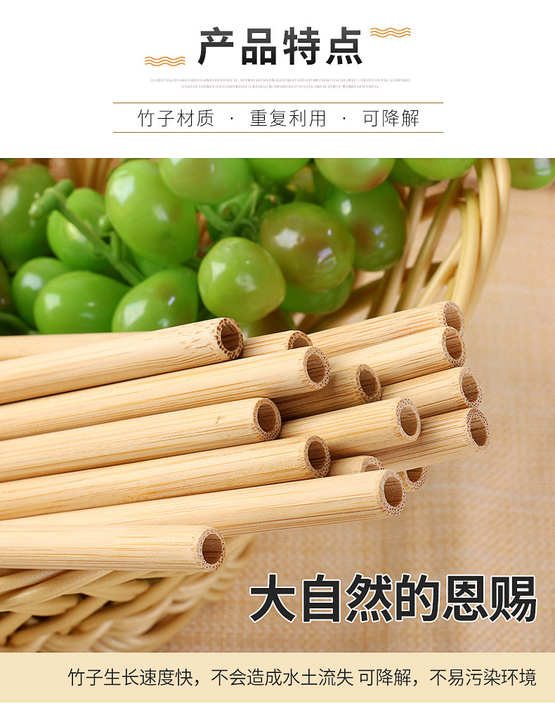 厂家批发可降解饮料奶茶一次性竹吸管100支可加LOGO咖啡果汁通用