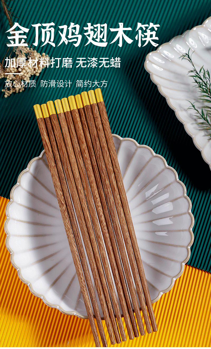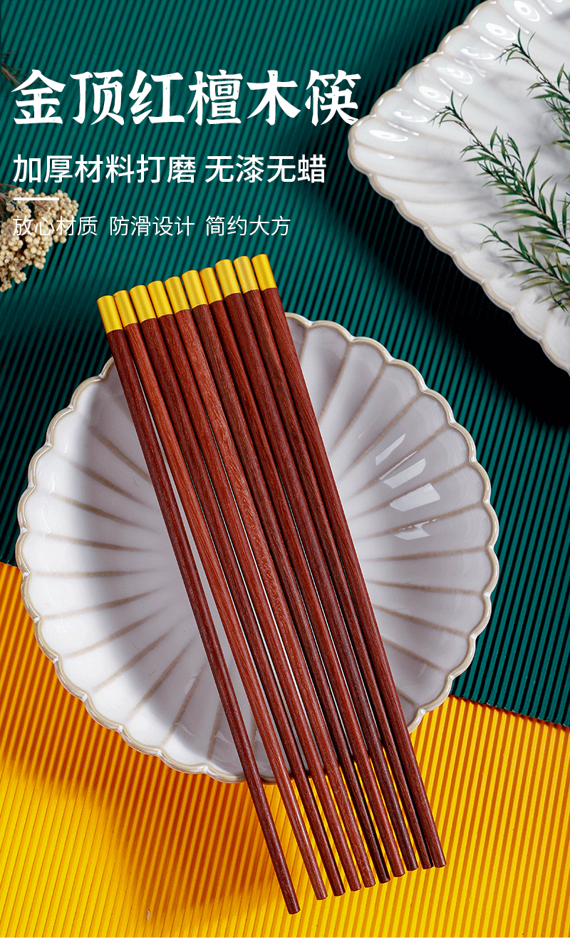 鸡翅木筷子批发家用高档耐高温防滑福字铝头高颜值红檀木礼品筷