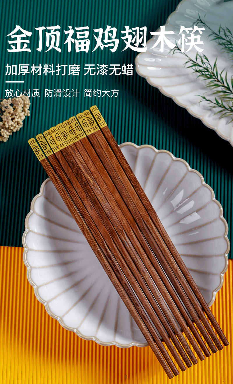 实力工厂无漆无蜡耐高温不易发霉实木餐具家用鸡翅木红檀木筷子