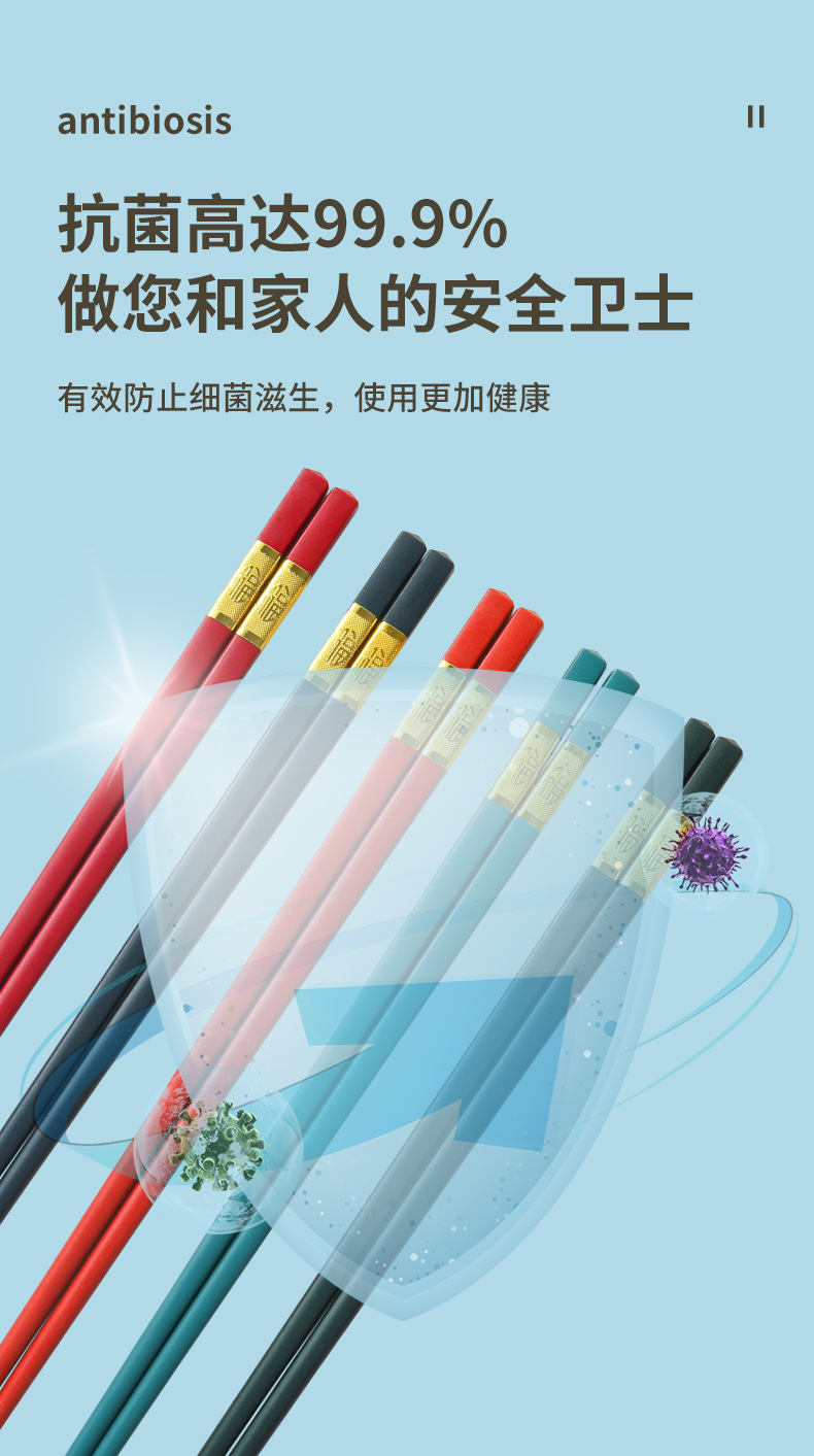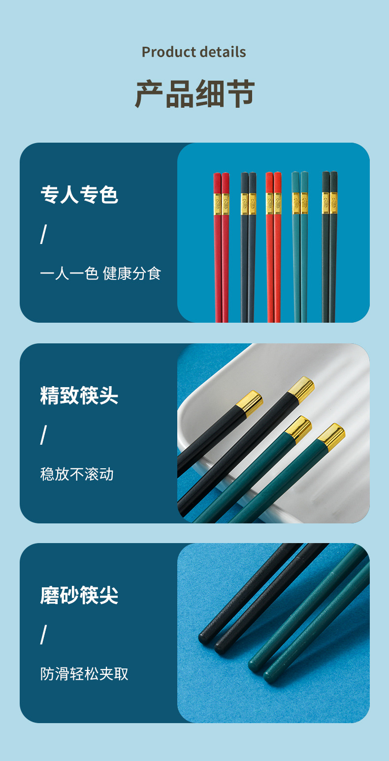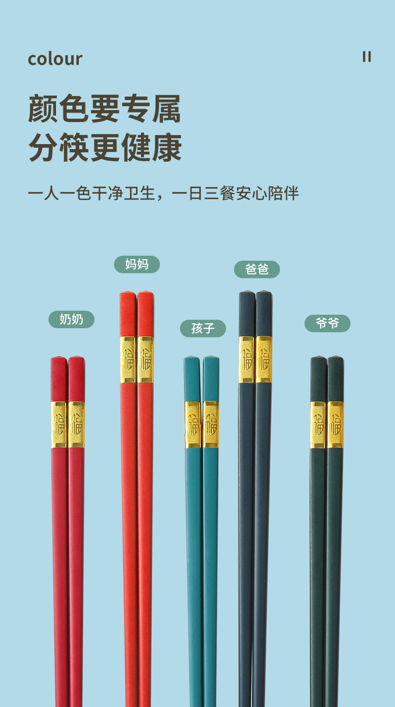 新款圆顶方顶福字合金筷子家用中式风格不发霉高档合金筷子 批发