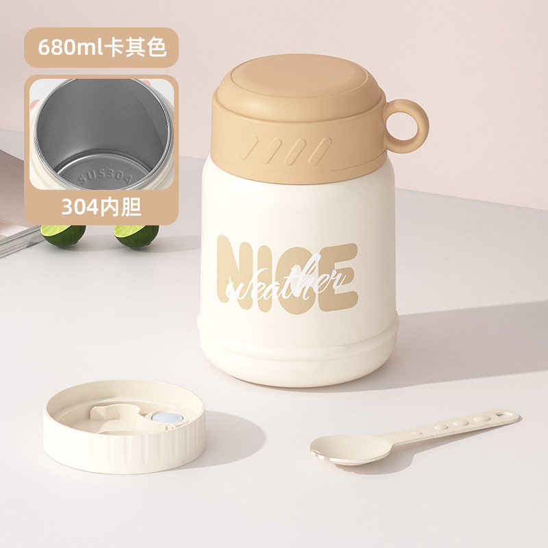 304不锈钢大肚早餐杯汤杯带盖勺燕麦杯密封牛奶杯汤罐保温密封桶