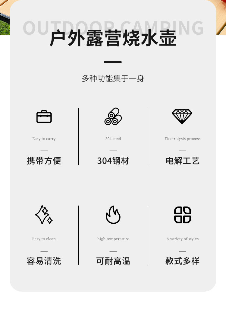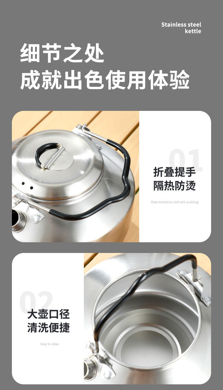 户外烧水壶 304不锈钢防烫手柄便携式露营野炊野外旅行迷你烧水壶