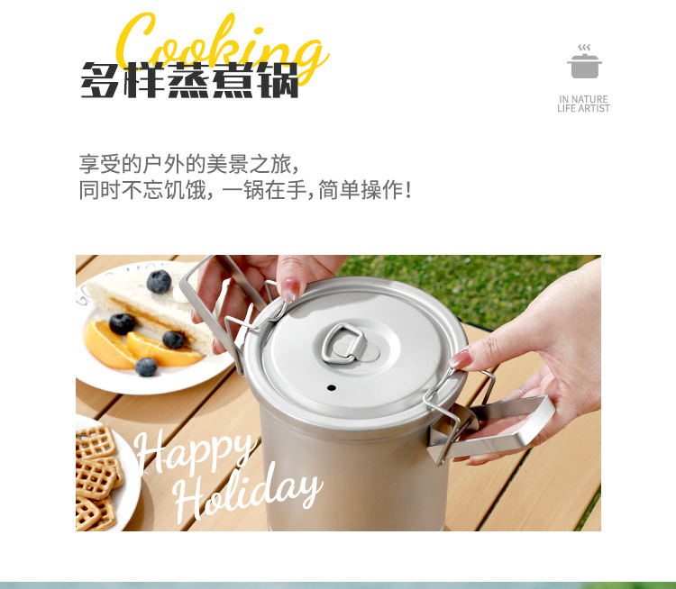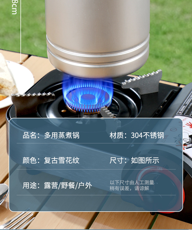 户外蒸煮锅 304不锈钢便携密封耐高温多功能旅行野营煮饭蒸煮锅