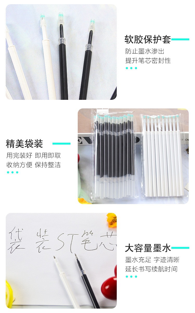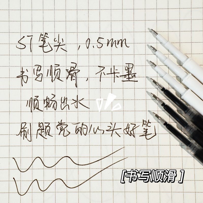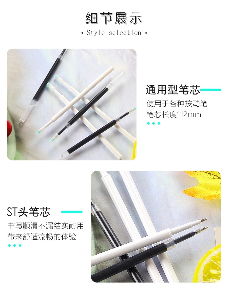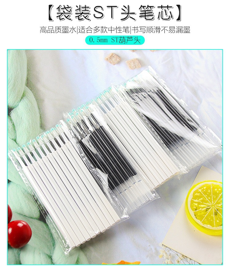 st头笔芯刷题笔按动笔芯学生高颜值顺滑葫芦头黑色0.5mm中性替芯