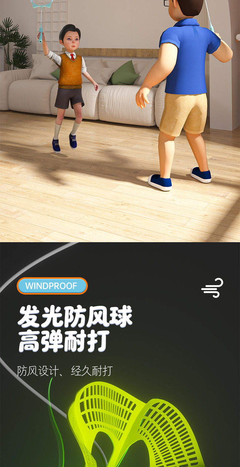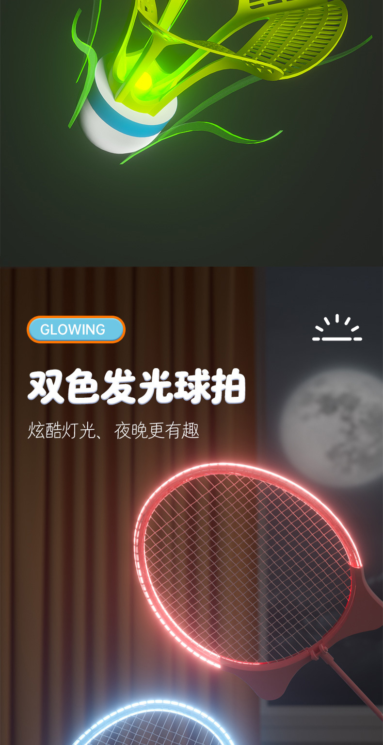 抖音爆款发光羽毛球拍发光羽毛球套装室内羽毛球训练器悬挂羽毛球