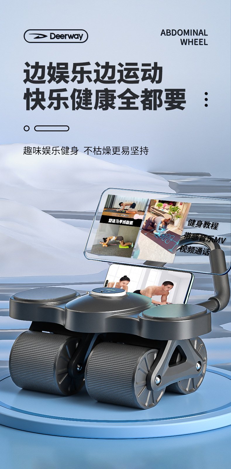 厂家直供健腹轮四轮自动回弹收腹卷腹练腹肌男女家用肘撑滚轮