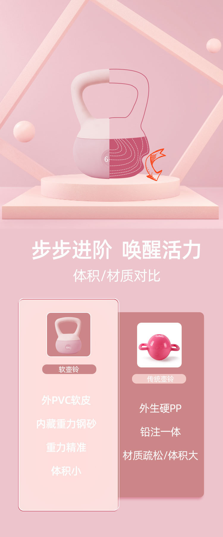 轻律软壶铃女士健身家用练翘臀神器哑铃男士运动塑形高端提壶软底
