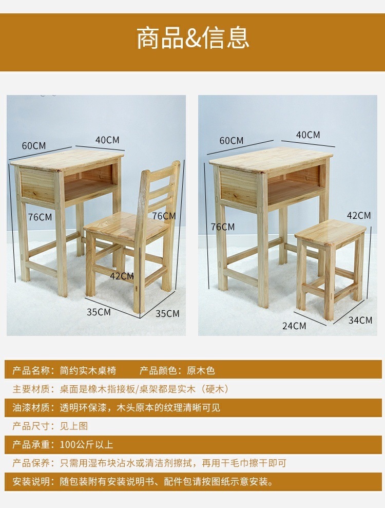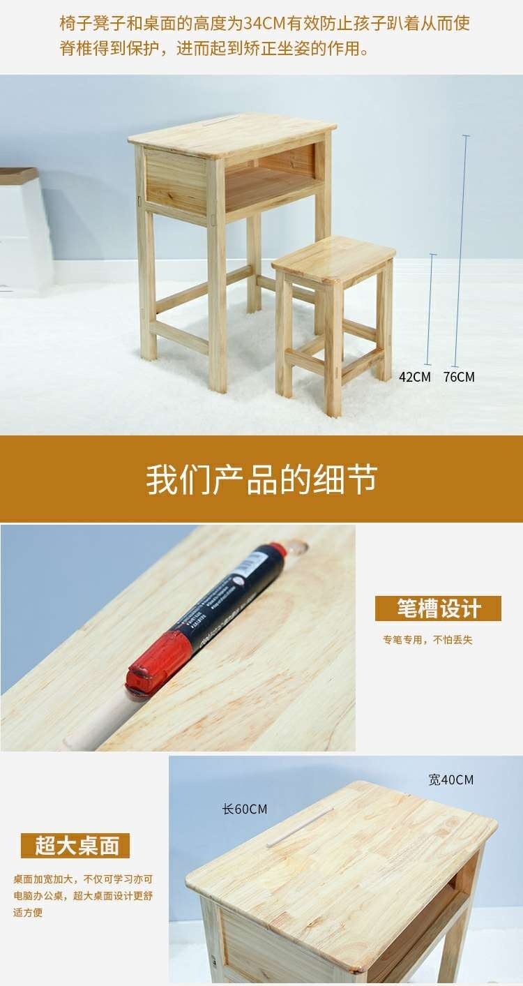 实木书桌单人全实木简易学习桌椅学生书桌卧室中学生小学生一整套