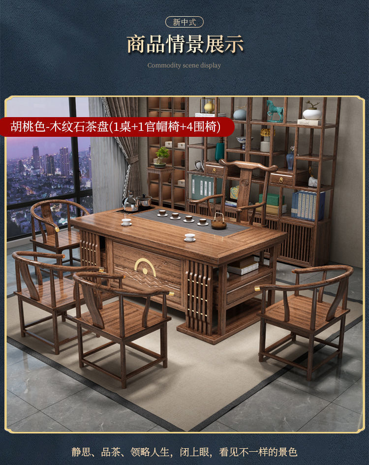 新中式茶桌椅组合简约现代实木茶几套装一体禅意茶道功夫茶台全套